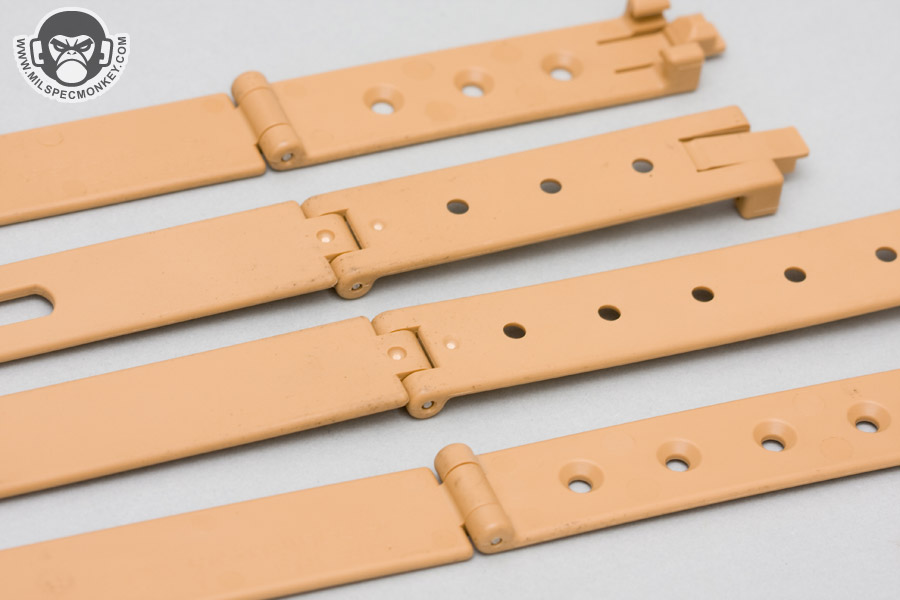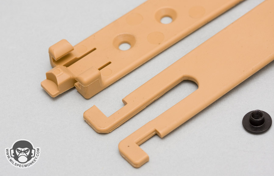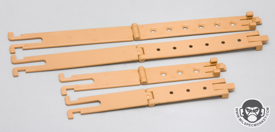 Ol' Blade-Tech took a pretty heavy duty approach and made these MOLLE LOKs. They are pretty darn rigid so I'm not sure if they ever intended the user to weave them. Due to this, the screw holes can be used for solid mounting points. As a bonus, the screws are even included. The end locks up pretty nice and secure. To release, it requires the middle area to be pushed down and the sides to be pushed in to clear the side hooks. This gives Malice clip like security without requiring some form of poker tool. I'm curious about how the middle hinge will stand up over time, but overall the MOLLE-LOKs are heavy duty and can take quite the beating. They are available in 2 sizes which are the equivalent of Malice short and long. Offered in Black, Foliage, and Tan colors. The main down sides are that since so stiff, they are really hard to weave and are the most expensive option out there currently.