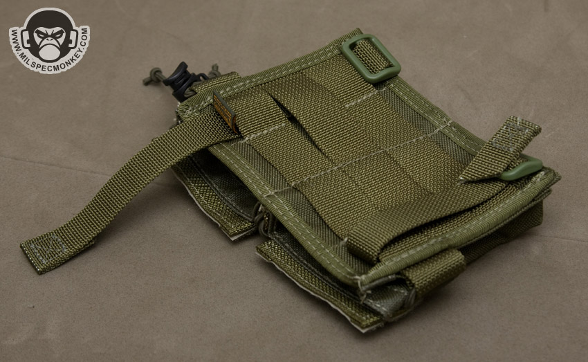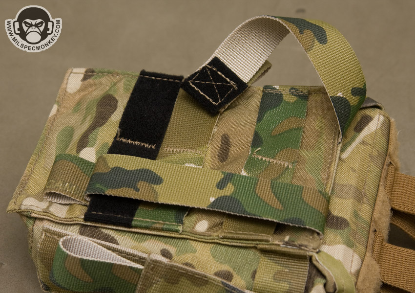 Tactical Assault Gear uses a similar soft snap as Paraclete (licensed), however adds an extra webbing fold to increase security. This way if enough force is ever delivered to rip the webbing out of its pocket, the extra webbing fold will snag on the PALS webbing.