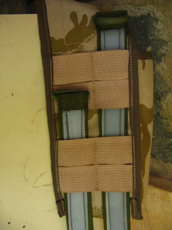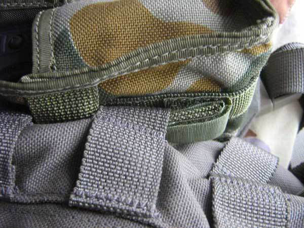 Sord has a unique style with velcro. This isn't the most secure method, but pulling velcro in a vertical direction has more hold strength than most think. Since there are no snaps to snag, weaving is an easy process. Thanks for the pics Gany / Rooks. Note: TAD Gear uses a similar system.