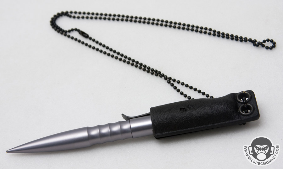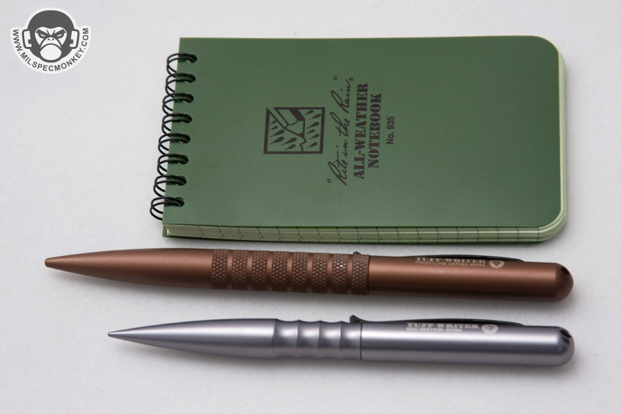 Some aspects that stayed the same are the clip and the pen cartridge. The clip is made of heavy duty spring steel with rowdy chemically welded bolts. In summary I won't be worried about that breaking off anytime soon if ever. Functionality wise it has good tension and the raised end lip makes it easy to mount. The cartridge is the same ones used in those cool guy space pens so they are pressurized allowing the user to write upside down and in extreme temperatures. They are affordably replaceable whenever you do run out of ink. The exterior finish is pretty snazzy and so far has been very scratch resistant. Although the finish isn't super flat matte, it is non-reflective and won't take on fingerprints. A lanyard hole is in the cap to allow your favorite cord to be added if a connection point is desired. As with all the Tuff-Writer pens so far, the kind of user they attract are those who like things super simple and heavy duty. It may not be the most convenient pen, but you will be able to depend on it with great certainty; rather it be simply signing a check or stabbing a bad guy in the face. The sheath is a little on the expensive side and not everyone is going to want to sport a pen necklace, but I think it really helps out the pen as a tactical admin platform.