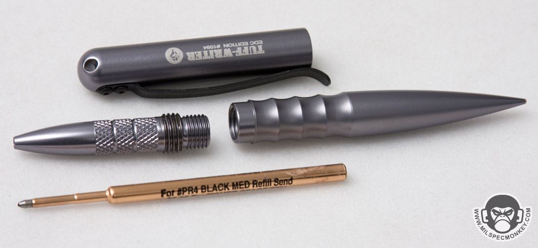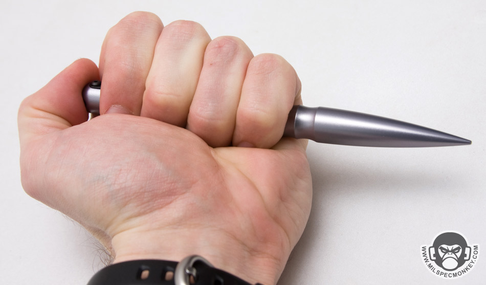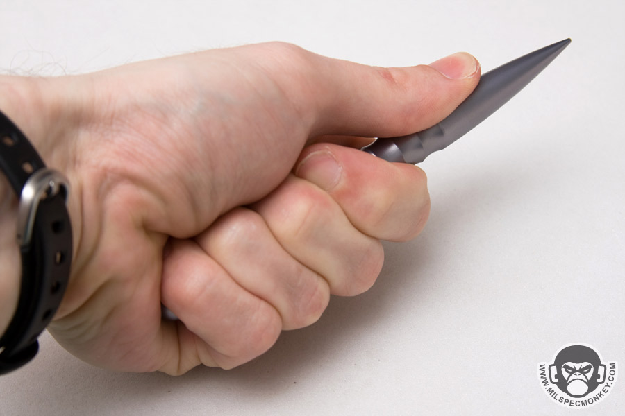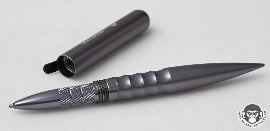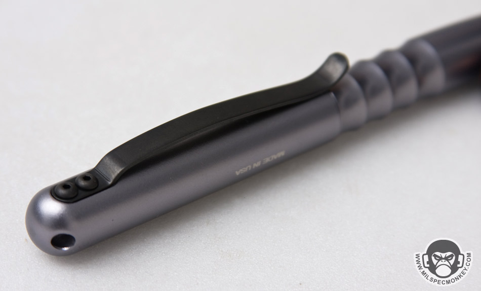 Another design change is the exterior where the EDC has "ribbing" cuts while the original Frontline had knurling. It does look cool, but I'll be honest it doesn't do much grip wise. While holding defensively there is only enough ribbing to cover about one finger which usually ends up as the pinky due to the clip placement. When using as a normal pen, the ribbing is totally missed. The original Frontline had enough knurling (due to the longer design) where one could get two fingers on the zone, which was a noticeable grip improvement. I will say the ribbing makes some sense with the EDC concept as it adds some form of grip help while being gentle on clothes or gear. If I had things my way I'd like to see at least one more rib notch, or change the sizing where the cut is turned more into 1 nice big finger stop rather than 4 small ribs.