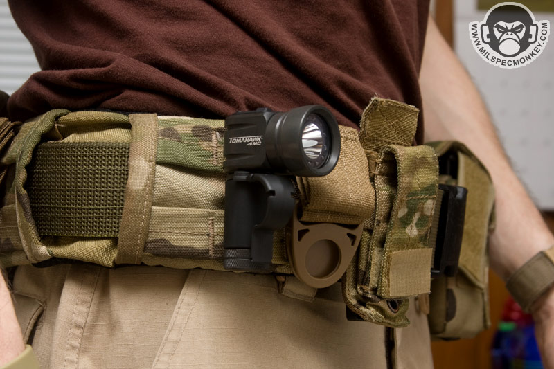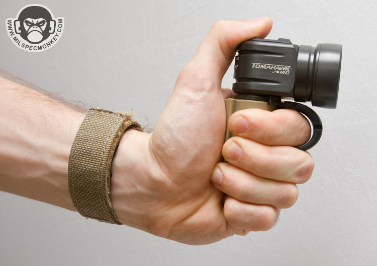 Some may have felt the Liberator was too unconventional, but First Light also brings us the very practical Tomahawk series. The format is similar to the Pentagon MOLLE light, however the Tomahawk is a much more powerful, thus a tactical capable package. The first use intent is to be belt or vest mounted with the metal clip providing solid hands free illumination. Wherever your torso points, the light points. When more precise pointing is needed one can quickly unmount the light and control it with their hand. To expand uses the Tomahawk includes a finger loop that improves grip and is a handy way to get the light briefly out of the way to use full finger control. As a bonus, an additional large finger loop is included good for when wearing gloves or if you are just a beefy dude. Examples of great times to use the loop would be needing to change a magazine, use a pen, type on a keyboard, or grab some dirt-bag trying to run away. The Tomahawk doesn't fully fit in one's fist, but allows a good enough grip while being a heavy duty item to allow it to be a solid attitude adjuster when combined with a punch.