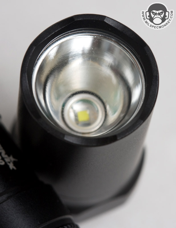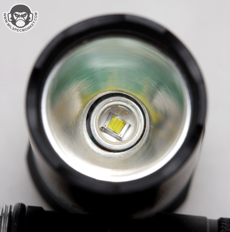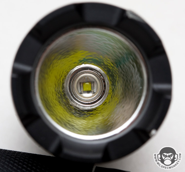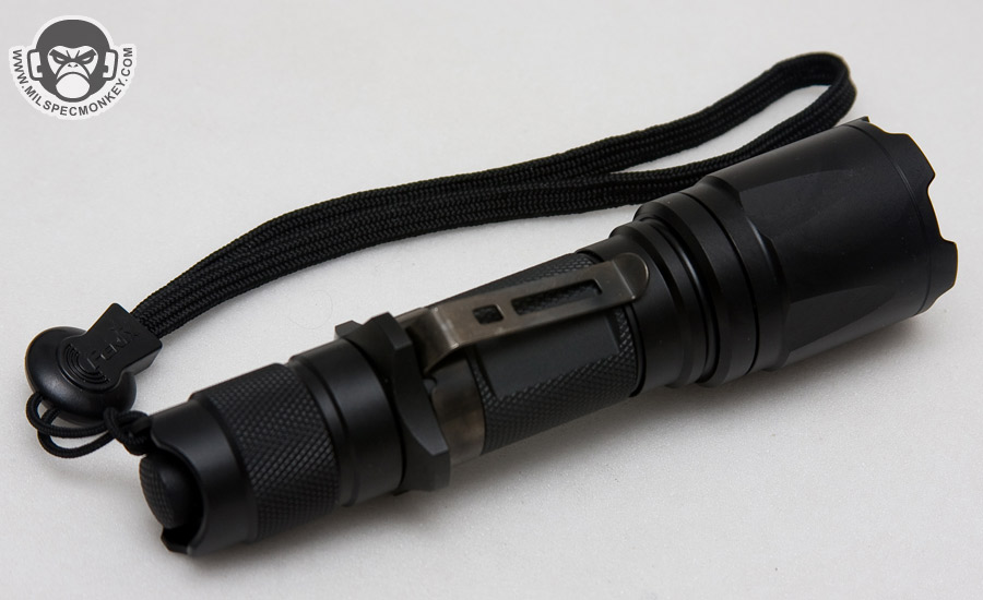 The TK12 is quite the different beast and appears to be optimized for tactical preferences. The belt clip is standard and like on the PD30 variant, it can be removed. The design is based on using 2 CR123 batteries, however 18650 rechargeable batteries can be used by getting an affordable battery tube accessory or buying the TK12EX package. The bezel has much more aggressive extrusions and although not especially sharp, they are plenty enough to settle a man down with a wack on the head. An anti-roll ring is included which double functions allowing a cigar style grip. For those who find this piece to just be in their way, it is removable. A bonus hole is in this ring for a secondary lanyard attachment point. The button area has extrusions that are notched and come just under the button. This allows for a easy button press while still having some accidental discharge protection. Since the button extrudes out a little, the TK12 cannot stand on its tailcap without external support. Due to this button setup the light can be difficult to engage in the cigar style grip as the button doesn't stick out openly like on Surefire lights.