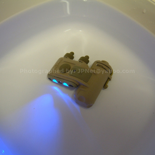 The last thing I decided to do was a quick water resistance test. I didn't see any waterproof markings so I assumed that it was, at best, water resistant. But sprinkling water on it was just too boring so I decided to submerge the helmet light in about 4" of tap water. The helmet light was turned on and remained submerged for the remainder of my photo shoot - which was approximately 10 minutes. During this time I shook it around (under water) to remove the trapped air bubbles for better photos. And to my relief the helmet light kept going without experiencing a single malfunction. Afterwards I lightly toweled off the excess water and opened the battery compartment to check for leaks. While there was a little moisture present, not enough water had entered the battery compartment to cause any problems. Obviously that doesn't mean this light is waterproof so I don't go throwing this in the pool anytime soon. I will try to find a thicker, replacement o-ring at the local hardware store to see if it fixes this problem and post my results later.