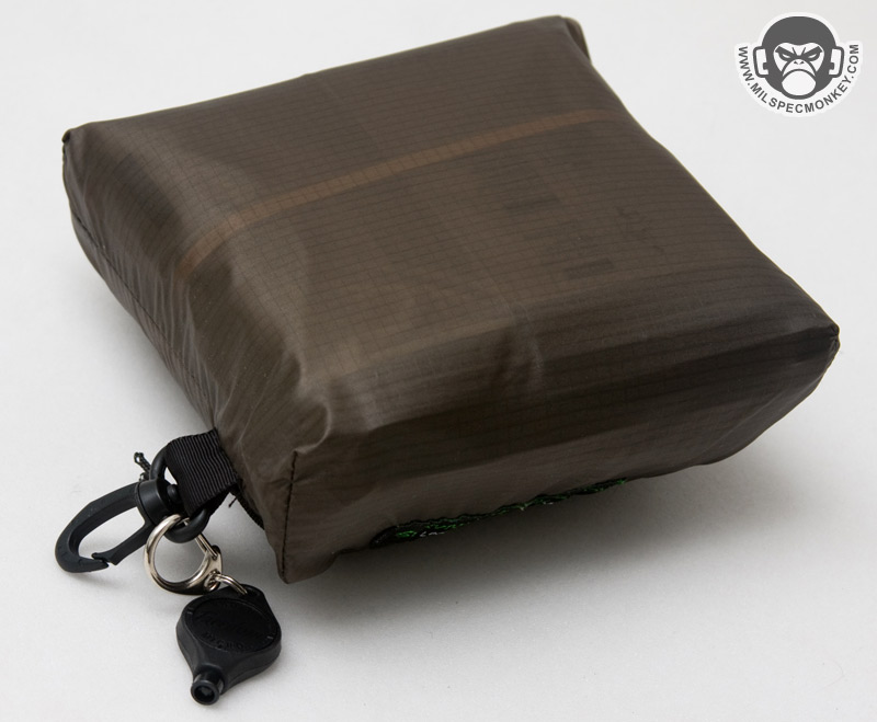 - Sil-Nylon Carry Pouch - All the goodies fit in this supplied pouch which is made mostly of 1.1 oz silicone impregnated, waterproof rip-stop nylon. The main opening is a single zipper which is not very waterproof, thus why some of the other parts of the kit come with waterproof packaging. If going full on E&E, I'd probably take off the survival metrics patch, which is no big deal. I'm indecisive on the latch hook as it makes for an easy way to attach to one's belt loop or kit, but I don't think I'd personally hold it that way and may cut it off to save on a little space. That aside, it functions well as a lightweight pouch to hold all the kit items in.