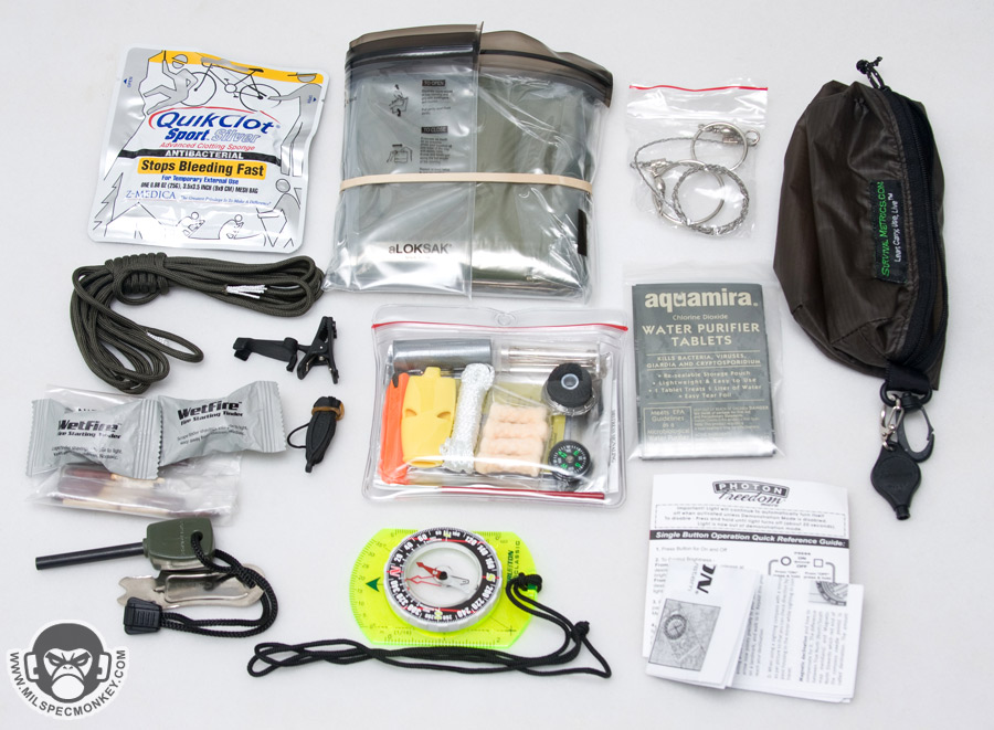 I'm no survival master so it was nice to be able to check out this kit to expand my experiences. Survival Metrics offers several kits and survival type supplies, however this kit was specifically made with the intent for military operations in a E&E (Escape and Evade) type situation. With this concept the main idea is to make the kit as small and lightweight as possible so it takes a very careful balance of what all is included.