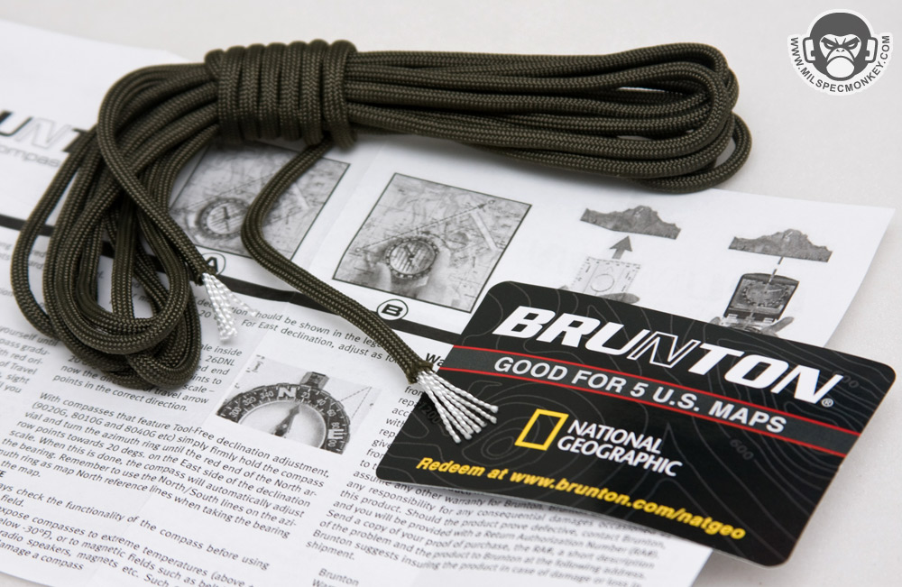 - Parachute Cord, 7 Strand (550 cord) 10' - Good ol' 550 cord has plenty of lashing uses. Use it as is for full tensile strength, or take out the inner strands for more length and usability options.