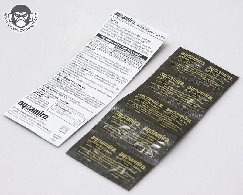 - Aquamira Water Purification Tablets [10 pack] - Tablets for water to kill any nasty bacteria or viruses without boiling. Viruses and Bacteria will have their asses kicked in a mere 15 minutes, but it takes a full 4 hours to also kill off Protozoa in all water types. Each pill will treat 1 liter of water. Comes with instructions that make the pills sound like poision, but don't stress over it too much as the water is nice and safe once you wait the advised time.