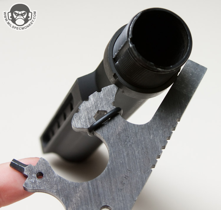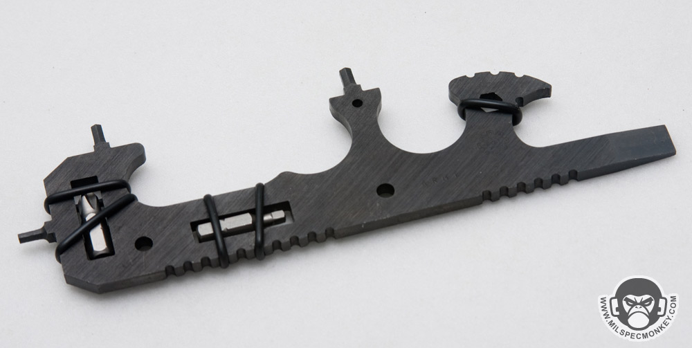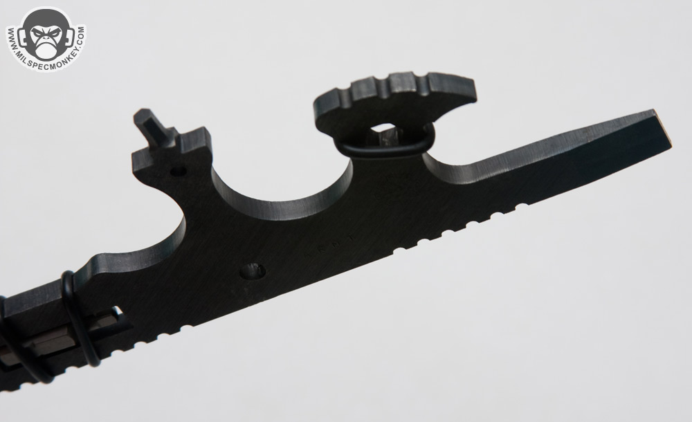The same notch area can be used to adjust flash suppressors just keep in mind you will need additional tools to get the security pin/screw out. On that note, 3 Allen key sizes are available sticking out from different parts of the tool (sizes 7/64, 9/64, 1/8). I inquired why the small one for flash suppressors was not included and was told it would be so small it would be a snap hazard while increasing tool cost significantly. The 3 offered sizes are common ones, but due to many accessories using wacky tools/sizes, always be prepared to need to carry additional tools. It is a bummer to have something missing on a multi-tool you need, yet you gotta keep in mind if everything was on the ARMT it would look like a huge porcupine of metal.