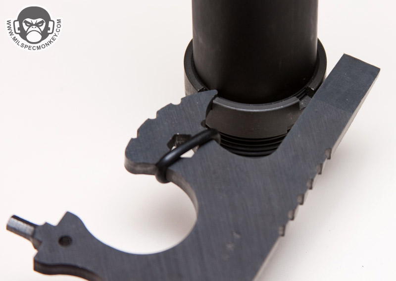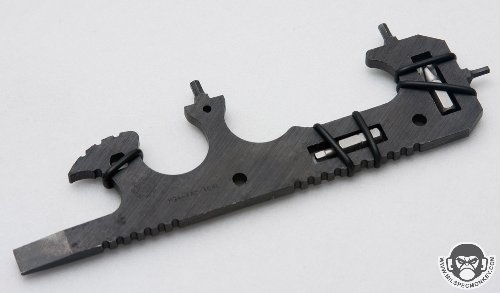 For change considerations I would be interested in seeing if a third bit could be held in the tool interior without degrading much strength. For something more drastic, perhaps the slots could even be adjusted to hold some traditional L-shaped Allen keys. Storage is somewhat of a concern due to all the pokey ends, so if possible I recommend placing in a slim sleeve-type pocket making the best use of the flat side of the tool. Tossing it loose in a bigger than needed pocket may cause holes over time. The ARMT is also claimed to be a good last defense fighting tool, which I find a little funny as that occasion would likely only occur if no other weapons are around and the enemy sneaks up on you while you are cleaning your rifle, however I will say the grip gives a combat weapon type feel that I don't think any other AR tool does. Despite the bands used are quality o-rings I will keep an eye on their durability since I see signs of wear on the edges of the one stretched further than the others. The ARMT makes for an a solid new AR tool option since armorer tools will be much larger and single-tool while the more traditional shaped folding AR specific multi-tools will be less rugged. Other than the usage of the bits, there are no moving parts so the core of the ARMT is quite battlefield durable.