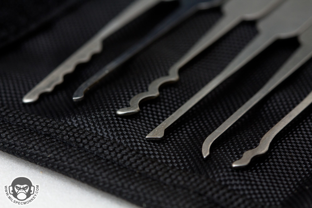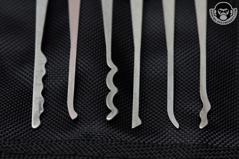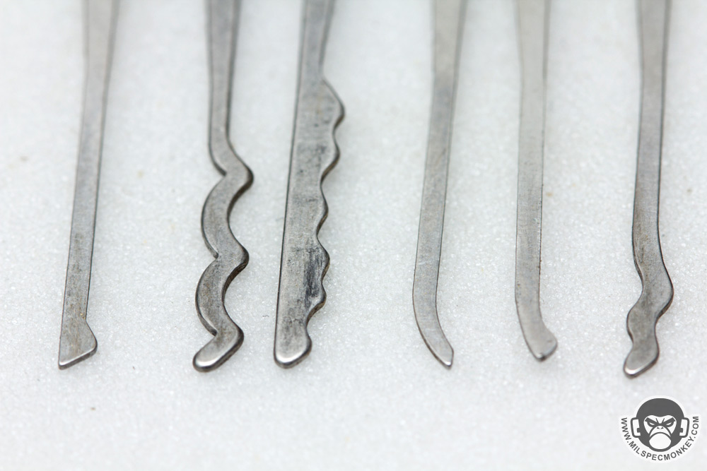 So what makes a lock tool a quality tool? Generally they need to be slim to fit in those tiny keyholes while still being thick enough to have long term durability of all that raking and tension. Just a dash of flexibility helps wiggle in tight spaces, while not being overly flexible which would result in decreased feedback and manual control. This Sparrows set has taken a good beating from all my practice and applications which seems to be a great durability test. Despite generally being rough with them I have not seen any bending or breaking issues at all.