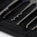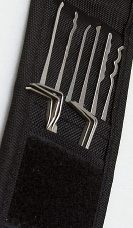 The tool variety offers multiple lock picking methods to allow appropriate matching of problem solving different lock types. The Tuxedo set includes: