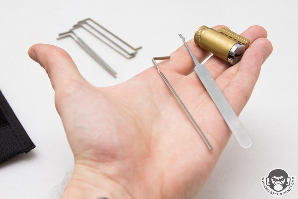 Sparrows main customer in mind is definitely for LEO / MIL / and Locksmiths, but when state laws allow, a nice lock pick set is quite handy for a civilian as well for all kinds of legal uses such as fixing locking yourself out of the house or losing the key to that old rusty padlock. Lockpicking also can give great insight into one's own security level to decide if adequate. All lock picks shown are manufactured by Sparrows out of American Made 301 Cold Max steel with average tension strength of 280,000 PSI. If interested in a set at all I recommend checking out their site as they offer quite the selection. If these tools can survive my monkey ass learning on them, they will also be able to hold up use from an actual pro.
