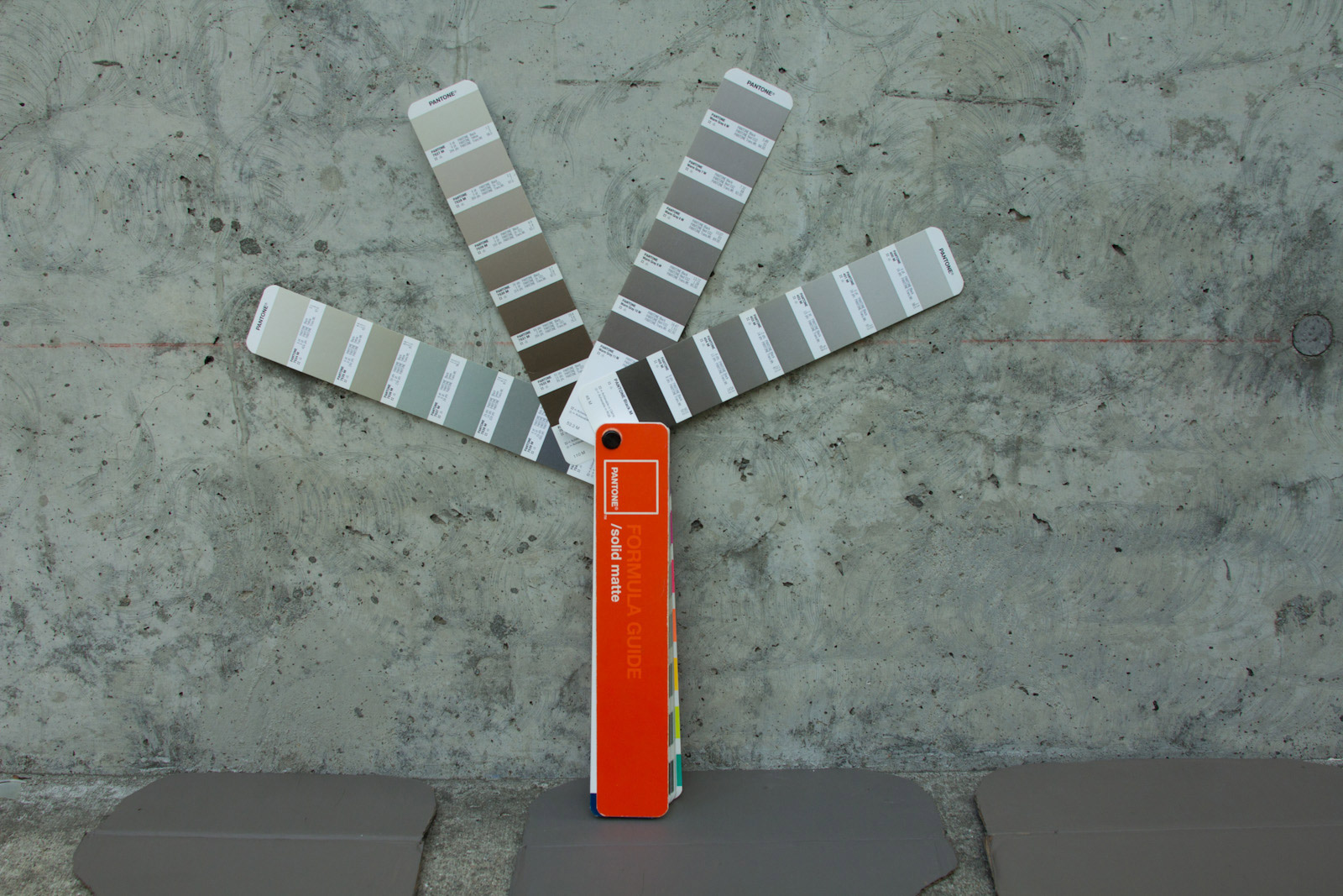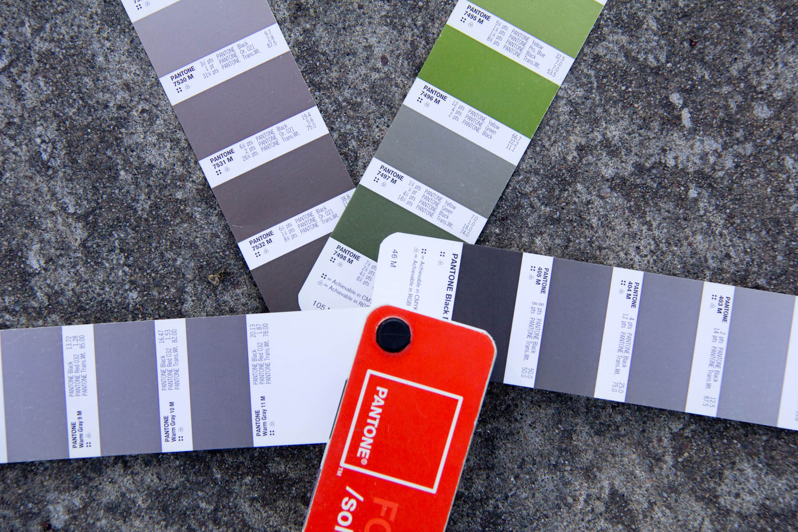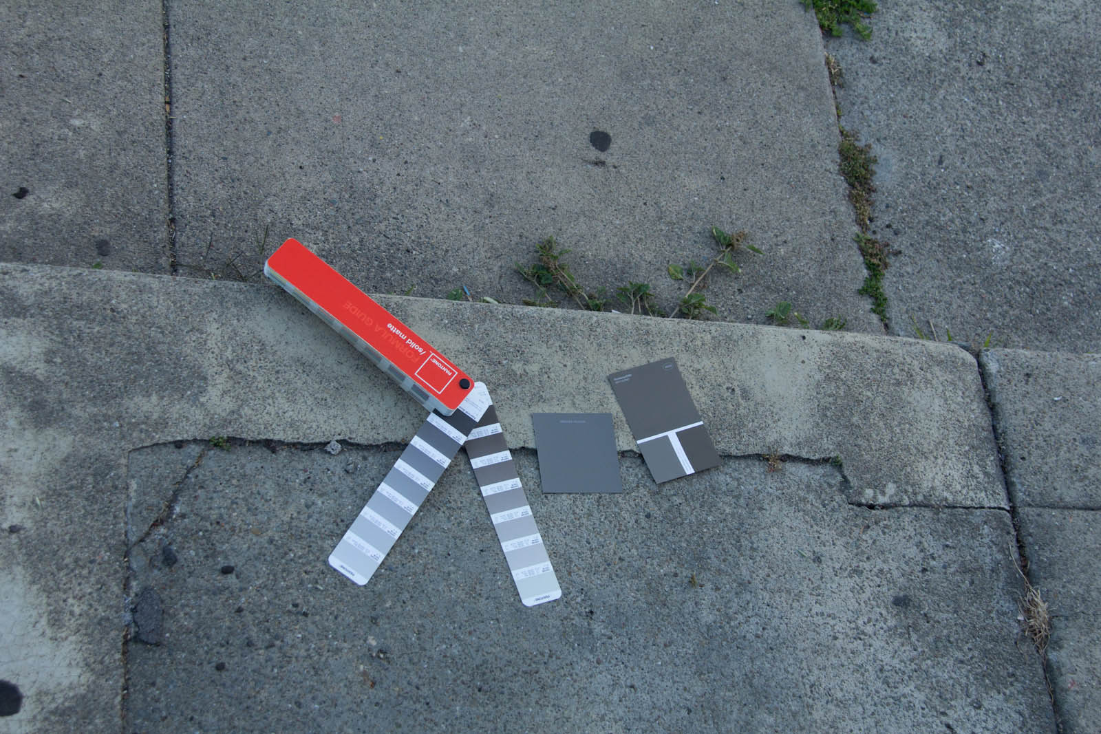 So to get started I whipped out the ol' Pantone book, turns out despite all the crap I was getting for warm greys, they are still actually a little more cool than most my medium concrete tests. I looked around at some other nearby grey pages, but eventually found that color 7531 was matching things more often. When it came to cooler concrete colors, color 405 came in handy, which is actually a neutral grey. There can be quite the spread of urban color from light grey sidewalks, medium concrete, old asphalt, to even super black fresh asphalt so the goal is try and aim for the middle.