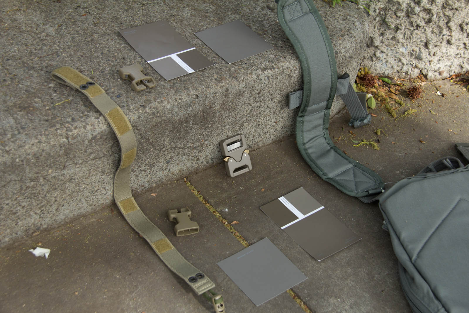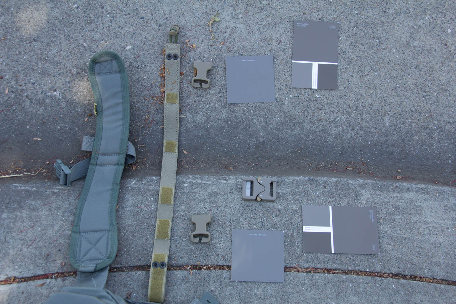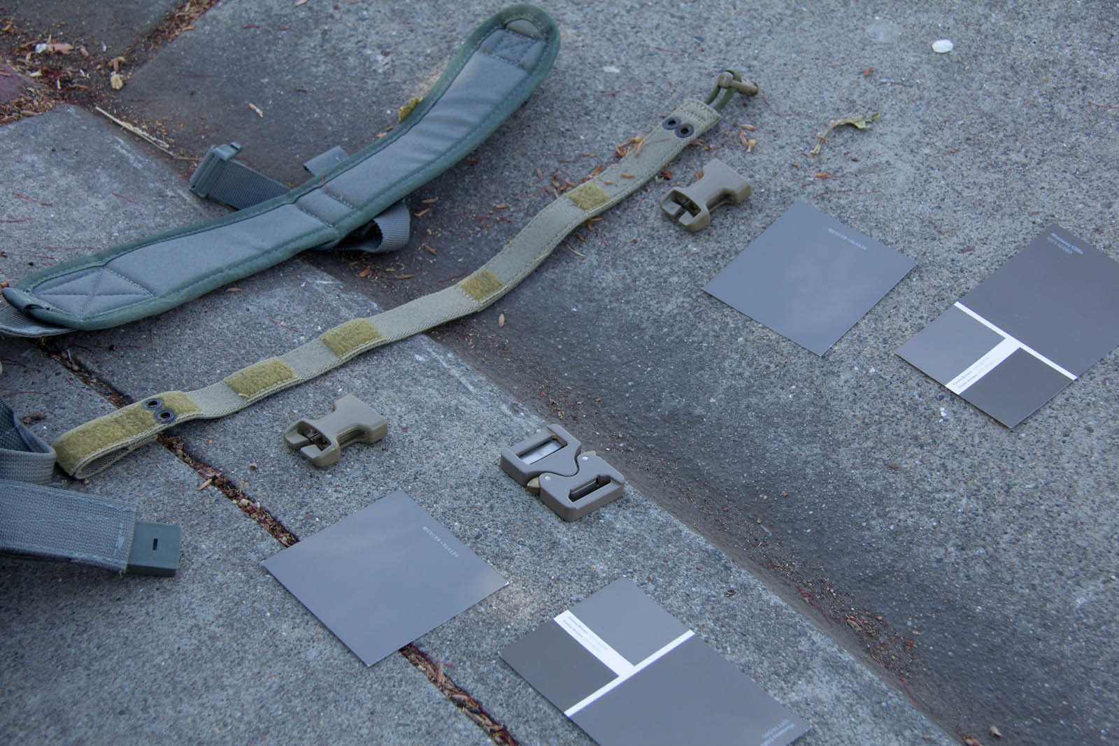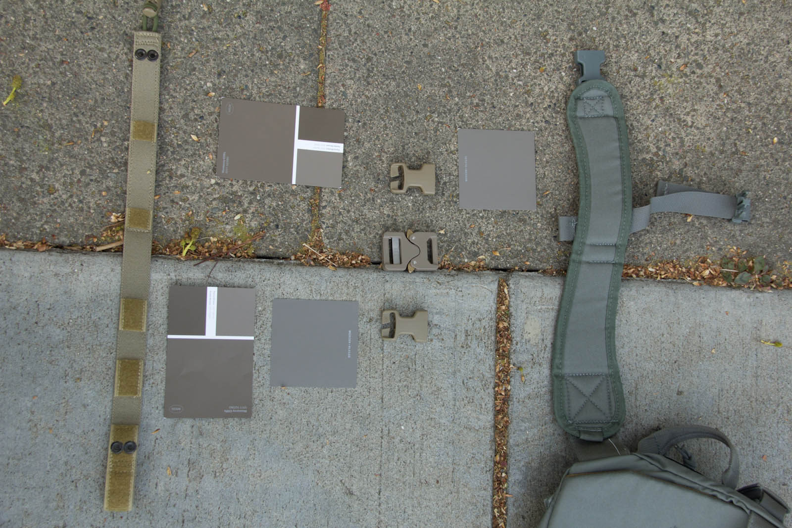 After several days of experimenting so far I think Elephant Grey/Fauna is doing the best job of finding a middle point, blending the best when next to varied/unmatched urban colors. This said, a possible down side is Elephant Grey/Fauna is not vastly different from Tan499 and when people look at it, most don't think grey. So to balance that out Mercer I think is next in line on being the right tone and not as warm so more folks will still perceive it as a grey. Supply chain wise it is good to know Tan499 is in the ballpark when a backup color is needed for a material. There are finer aspects to consider as well such as perhaps keeping Mercer gear clean for cool grey zones and then get them naturally dirty for blending in. That idea on the other hand probably wouldn't fly as well for LEOs with the whole public perception thing, so perhaps better to aim for the right color on clean gear.