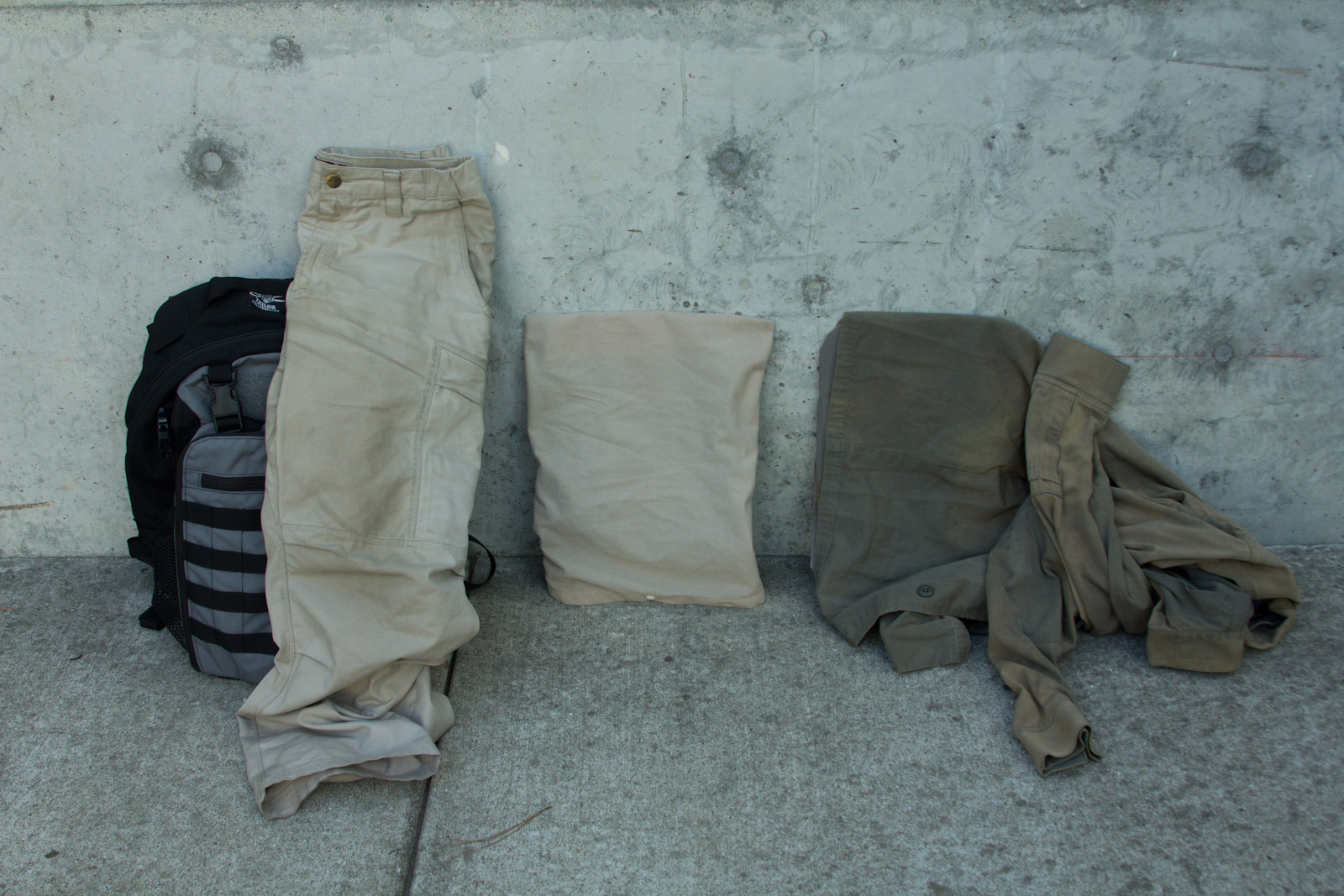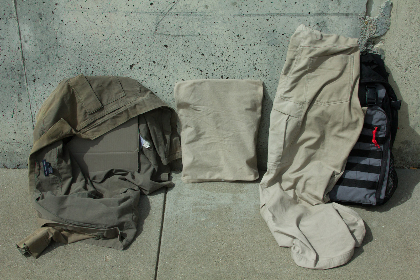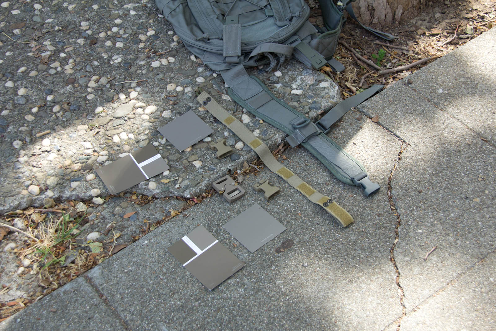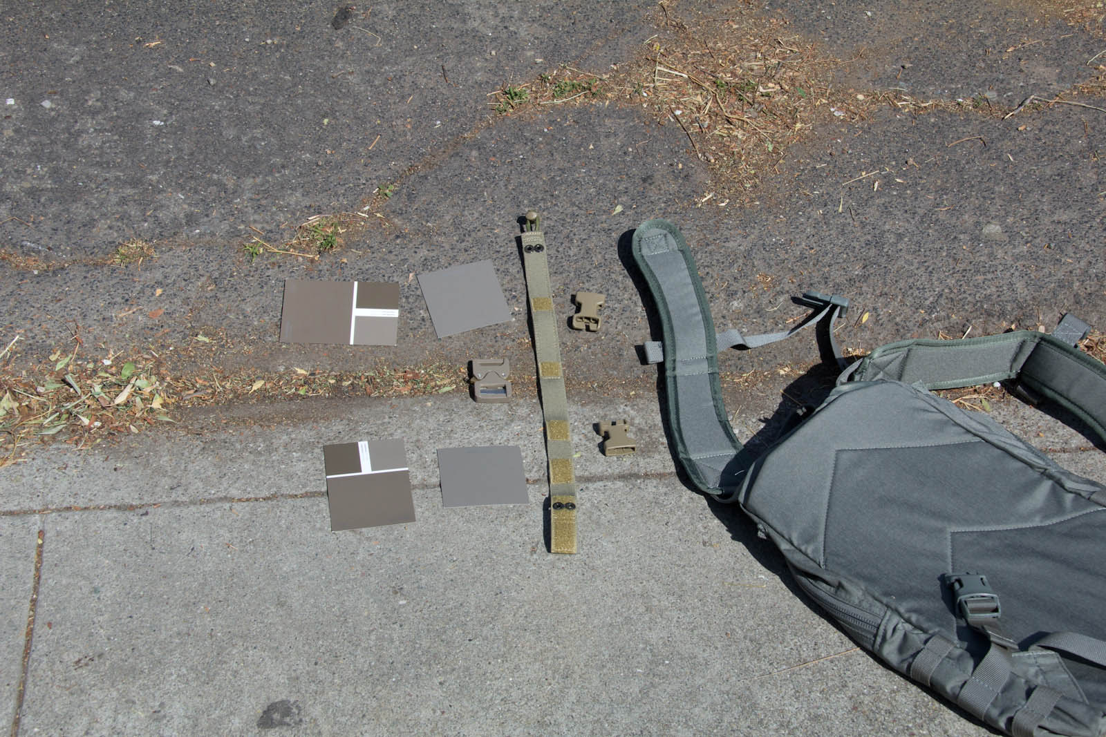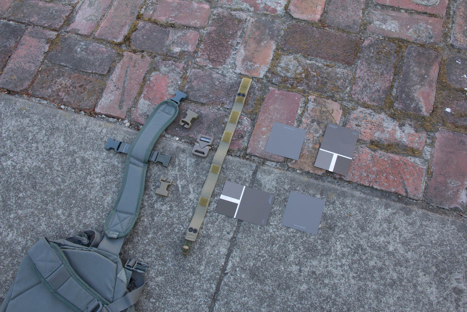 After several days of experimenting so far I think Elephant Grey/Fauna is doing the best job of finding a middle point, blending the best when next to varied/unmatched urban colors. This said, a possible down side is Elephant Grey/Fauna is not vastly different from Tan499 and when people look at it, most don't think grey. So to balance that out Mercer I think is next in line on being the right tone and not as warm so more folks will still perceive it as a grey. Supply chain wise it is good to know Tan499 is in the ballpark when a backup color is needed for a material. There are finer aspects to consider as well such as perhaps keeping Mercer gear clean for cool grey zones and then get them naturally dirty for blending in. That idea on the other hand probably wouldn't fly as well for LEOs with the whole public perception thing, so perhaps better to aim for the right color on clean gear.