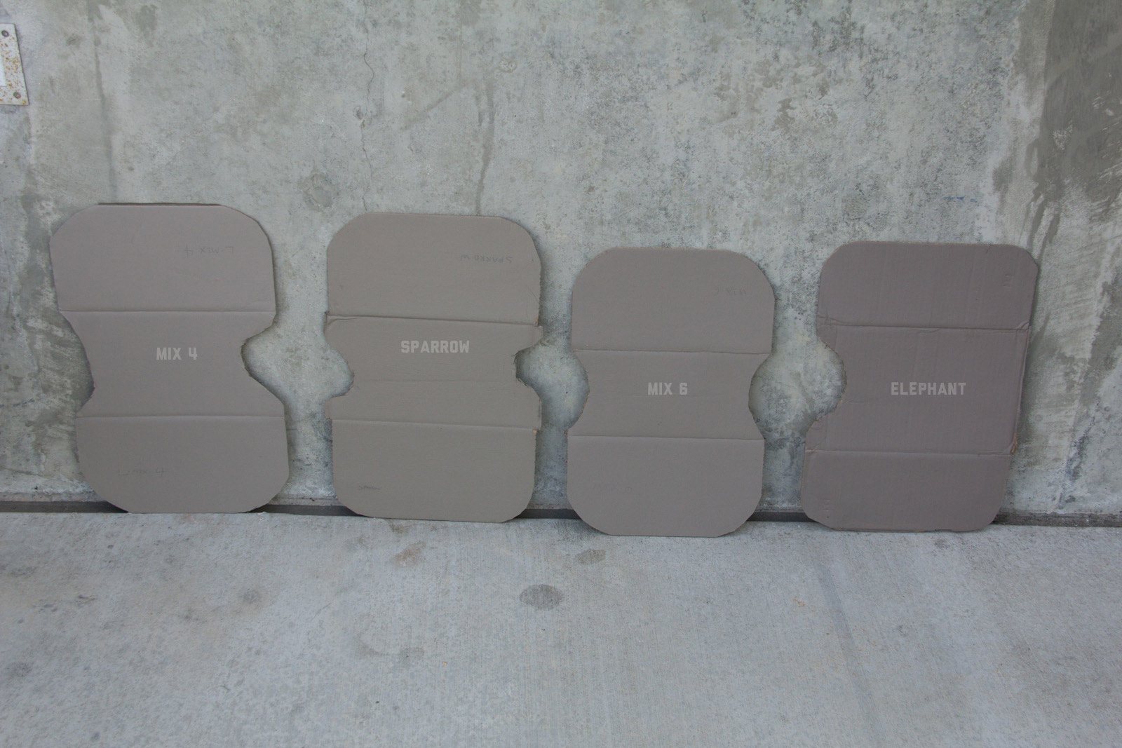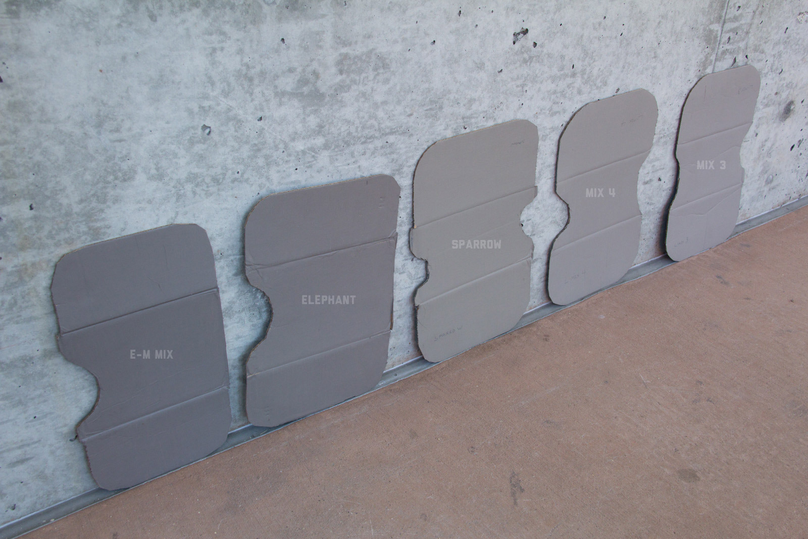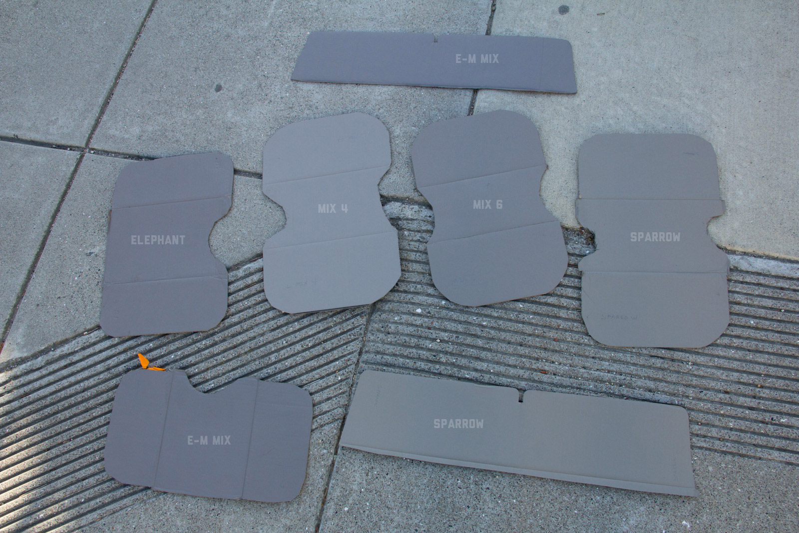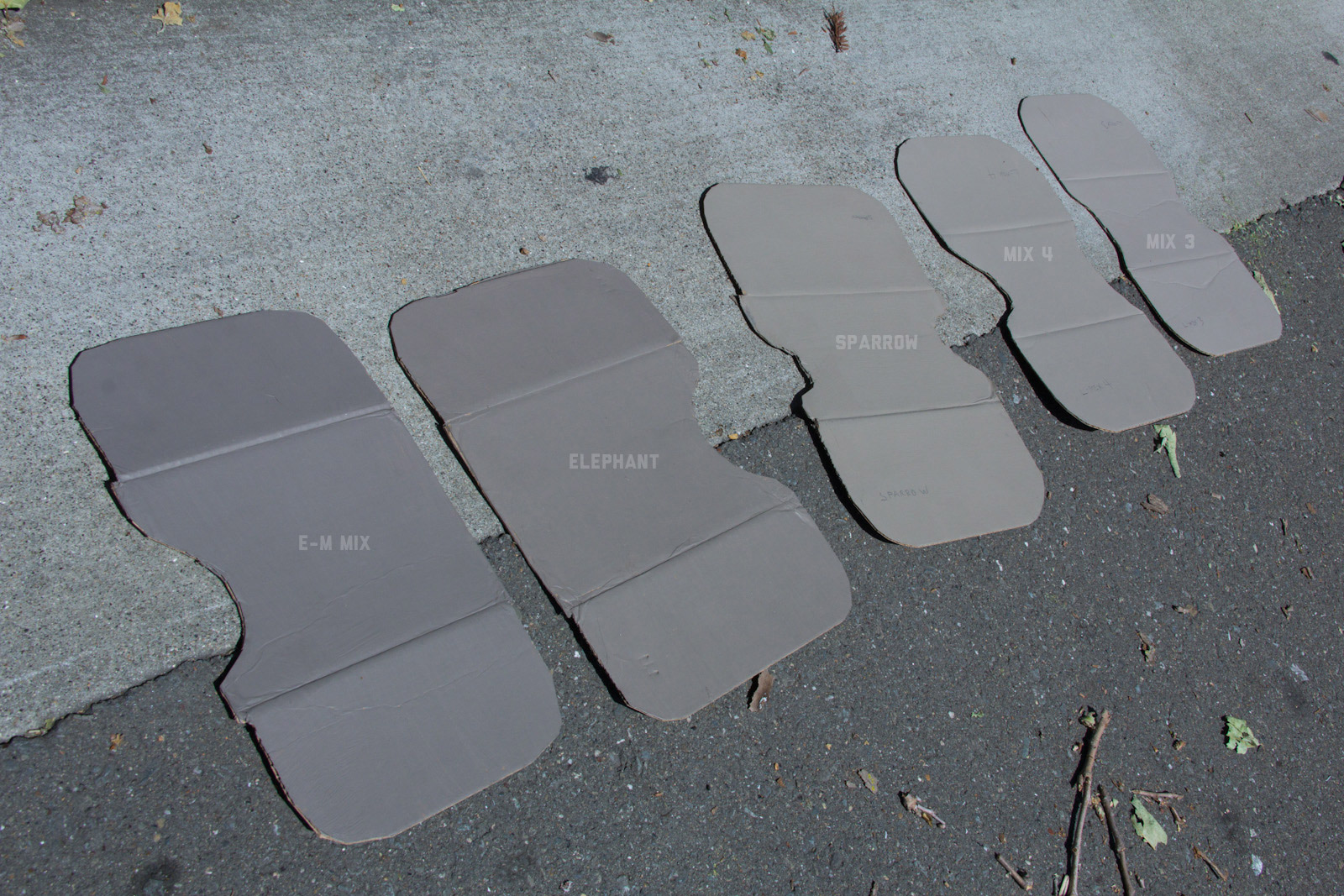 After a lot of back and forth on mixing and documenting, I narrowed things down to Elephant/Fauna, Mix6, Sparrow, and Mix4. The differences were getting pretty darn subtle which perhaps is a sign of good progress. Elephant leans towards the darker side, and although a smidge too much red it still looks good in a lot of places. Mix6 seems like a solid middle ground so far on the concrete spectrum, yet is still brighter than most tac colors in use. Going a little more light, sparrow also is in the middle zone and the slight green usually does more good than bad. Then finally Mix4 leans on the lighter end as a good neutral color, which of course makes it more susceptible to contrasting on darker colors.