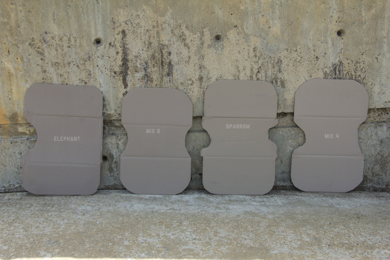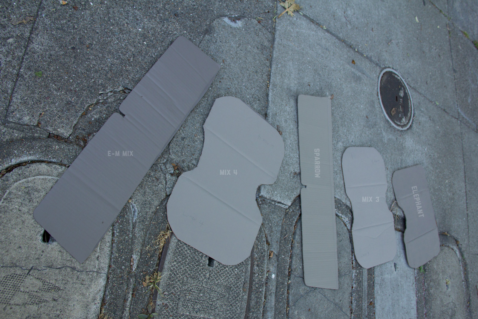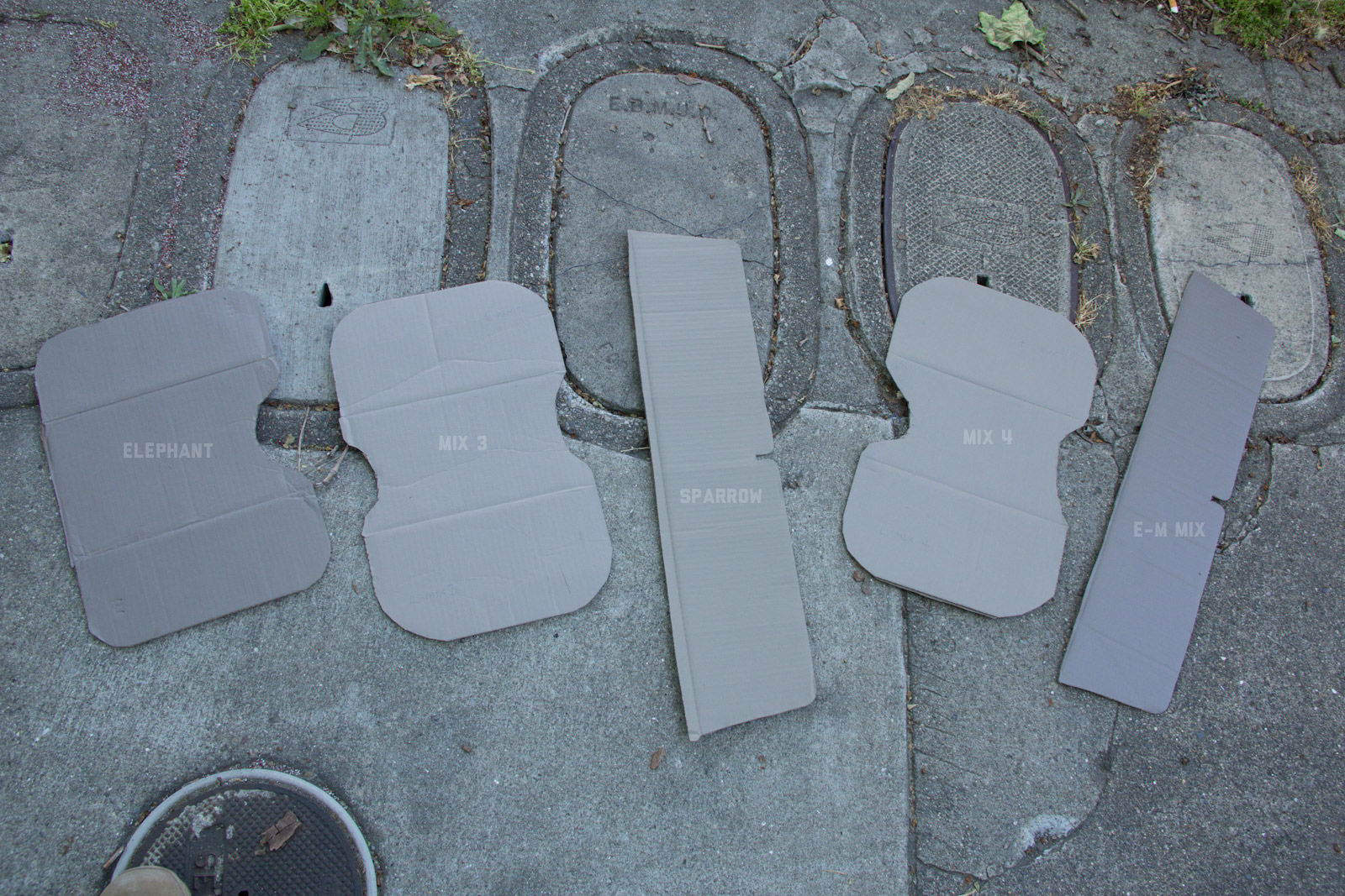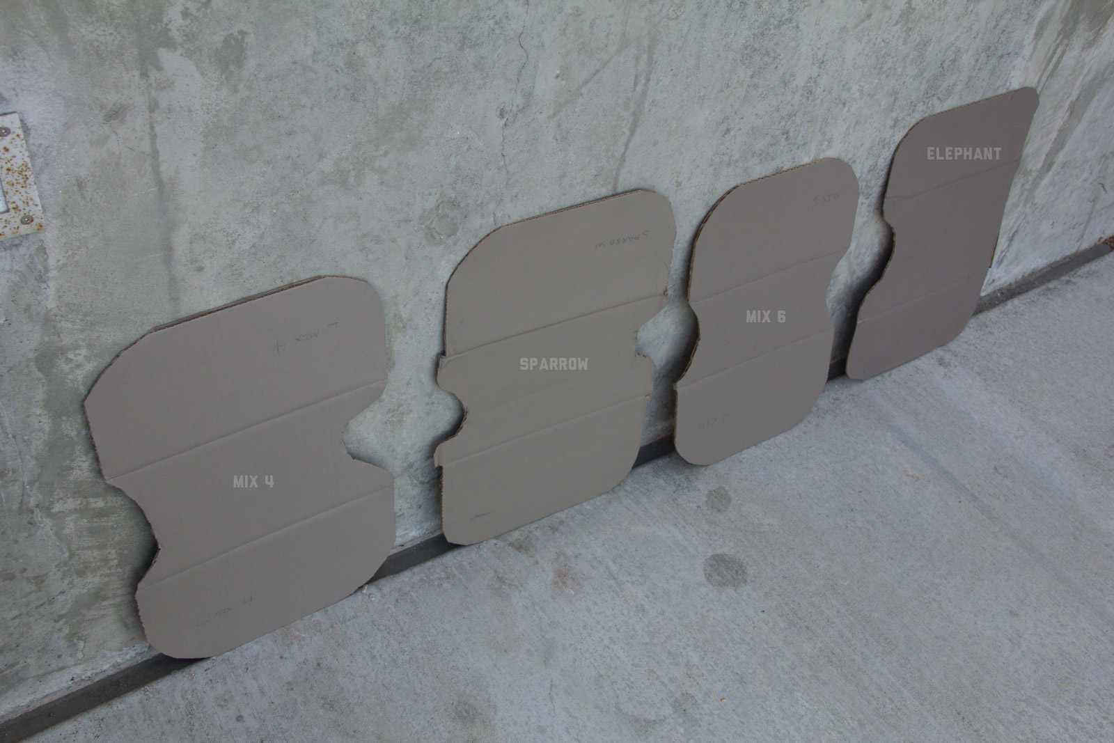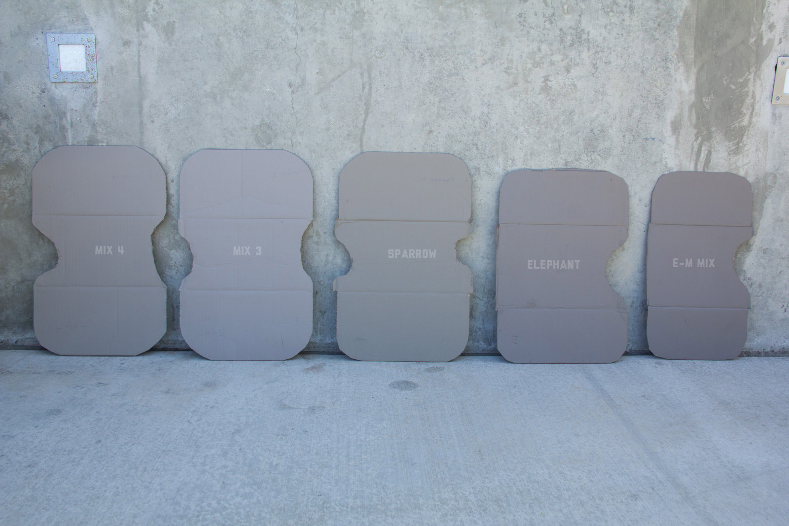 After a lot of back and forth on mixing and documenting, I narrowed things down to Elephant/Fauna, Mix6, Sparrow, and Mix4. The differences were getting pretty darn subtle which perhaps is a sign of good progress. Elephant leans towards the darker side, and although a smidge too much red it still looks good in a lot of places. Mix6 seems like a solid middle ground so far on the concrete spectrum, yet is still brighter than most tac colors in use. Going a little more light, sparrow also is in the middle zone and the slight green usually does more good than bad. Then finally Mix4 leans on the lighter end as a good neutral color, which of course makes it more susceptible to contrasting on darker colors.