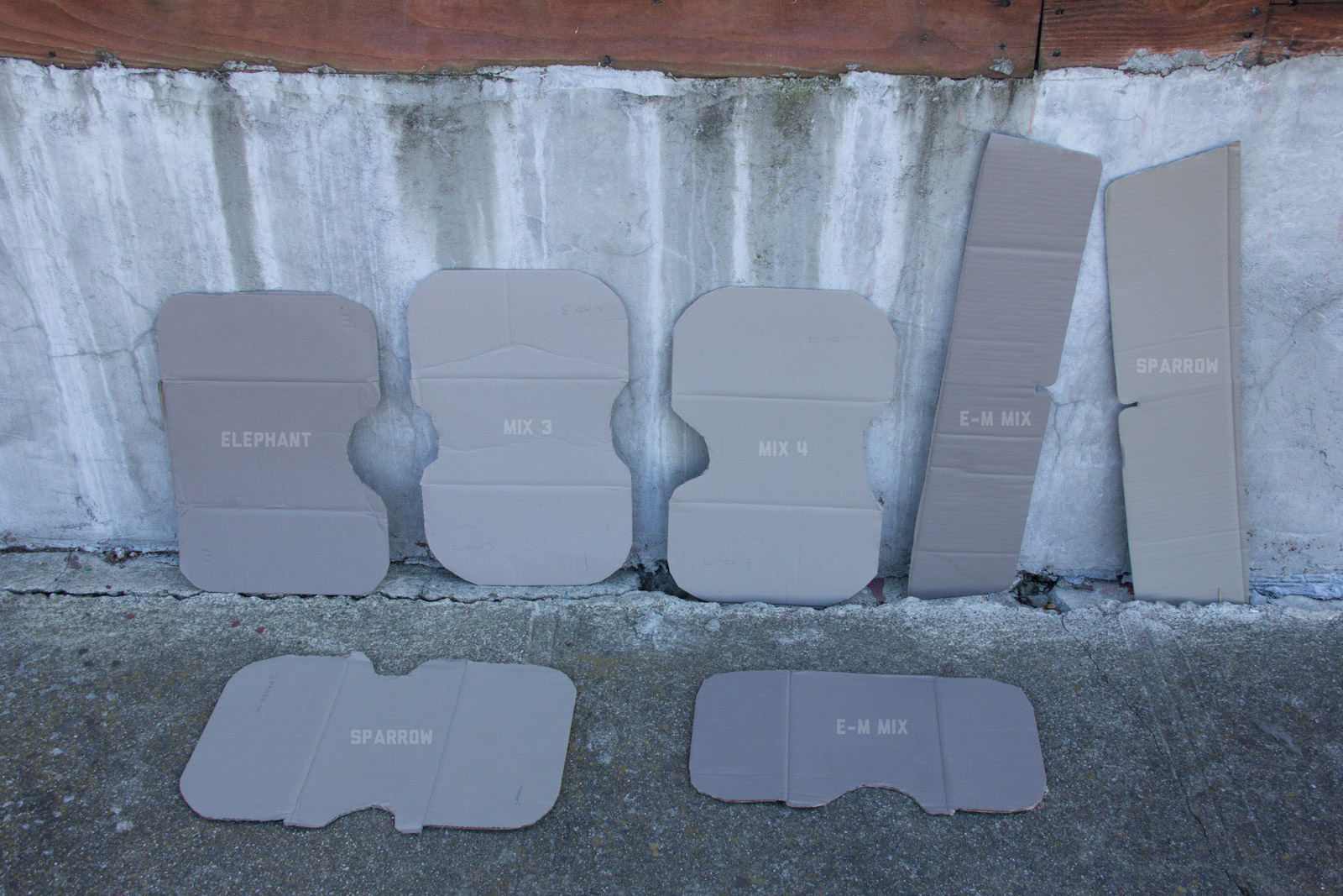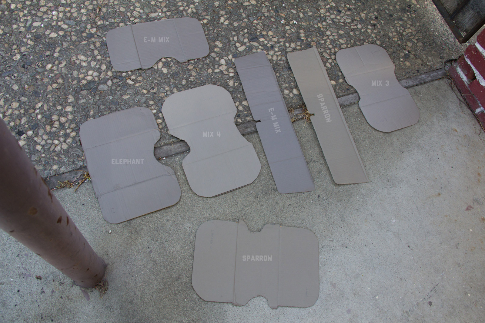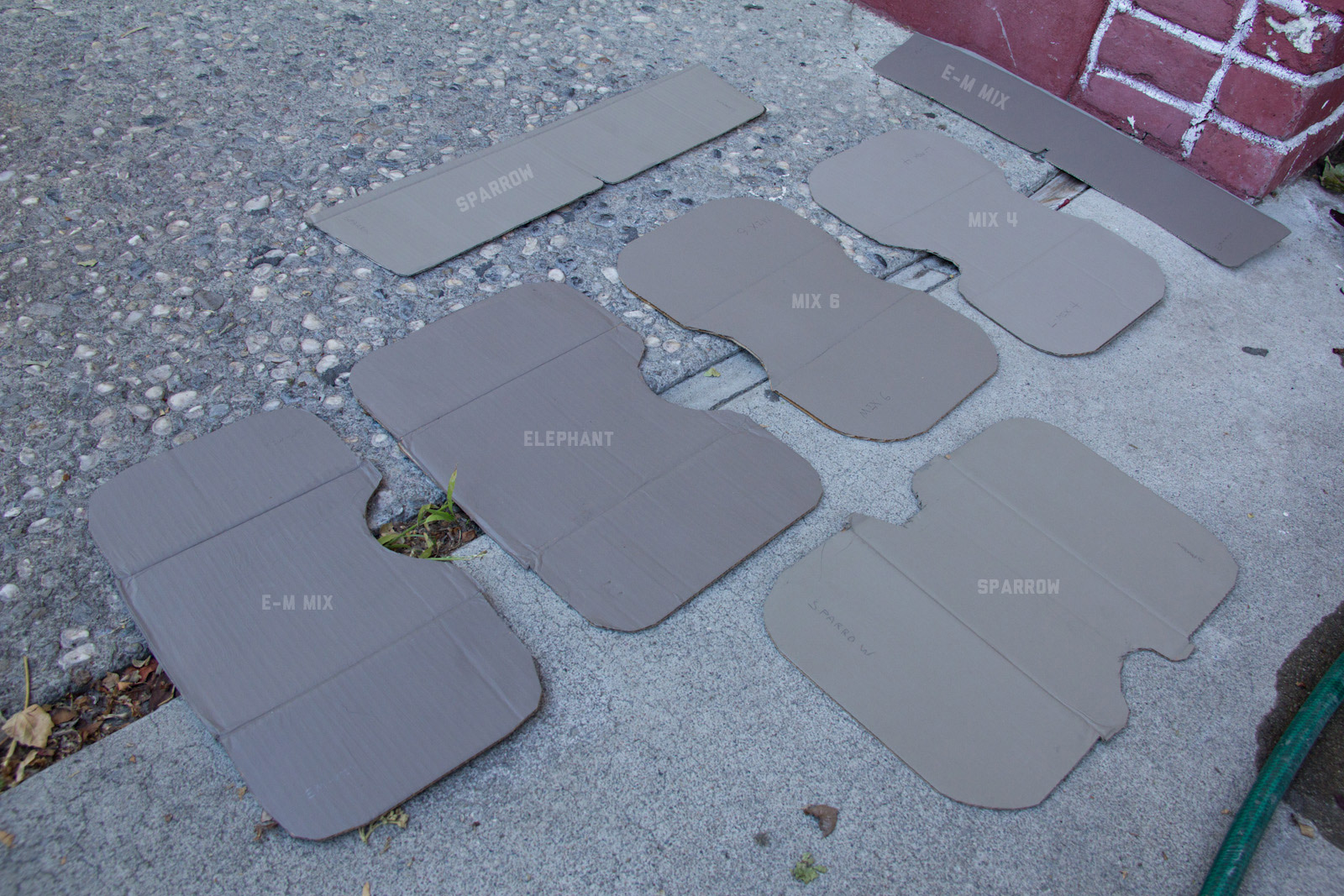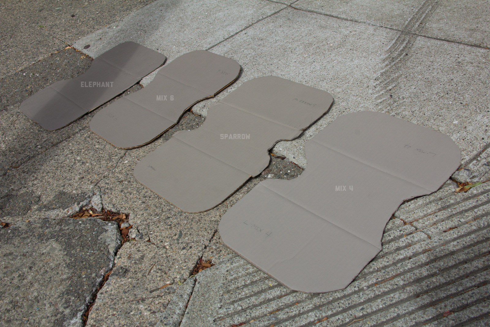 After a lot of back and forth on mixing and documenting, I narrowed things down to Elephant/Fauna, Mix6, Sparrow, and Mix4. The differences were getting pretty darn subtle which perhaps is a sign of good progress. Elephant leans towards the darker side, and although a smidge too much red it still looks good in a lot of places. Mix6 seems like a solid middle ground so far on the concrete spectrum, yet is still brighter than most tac colors in use. Going a little more light, sparrow also is in the middle zone and the slight green usually does more good than bad. Then finally Mix4 leans on the lighter end as a good neutral color, which of course makes it more susceptible to contrasting on darker colors.