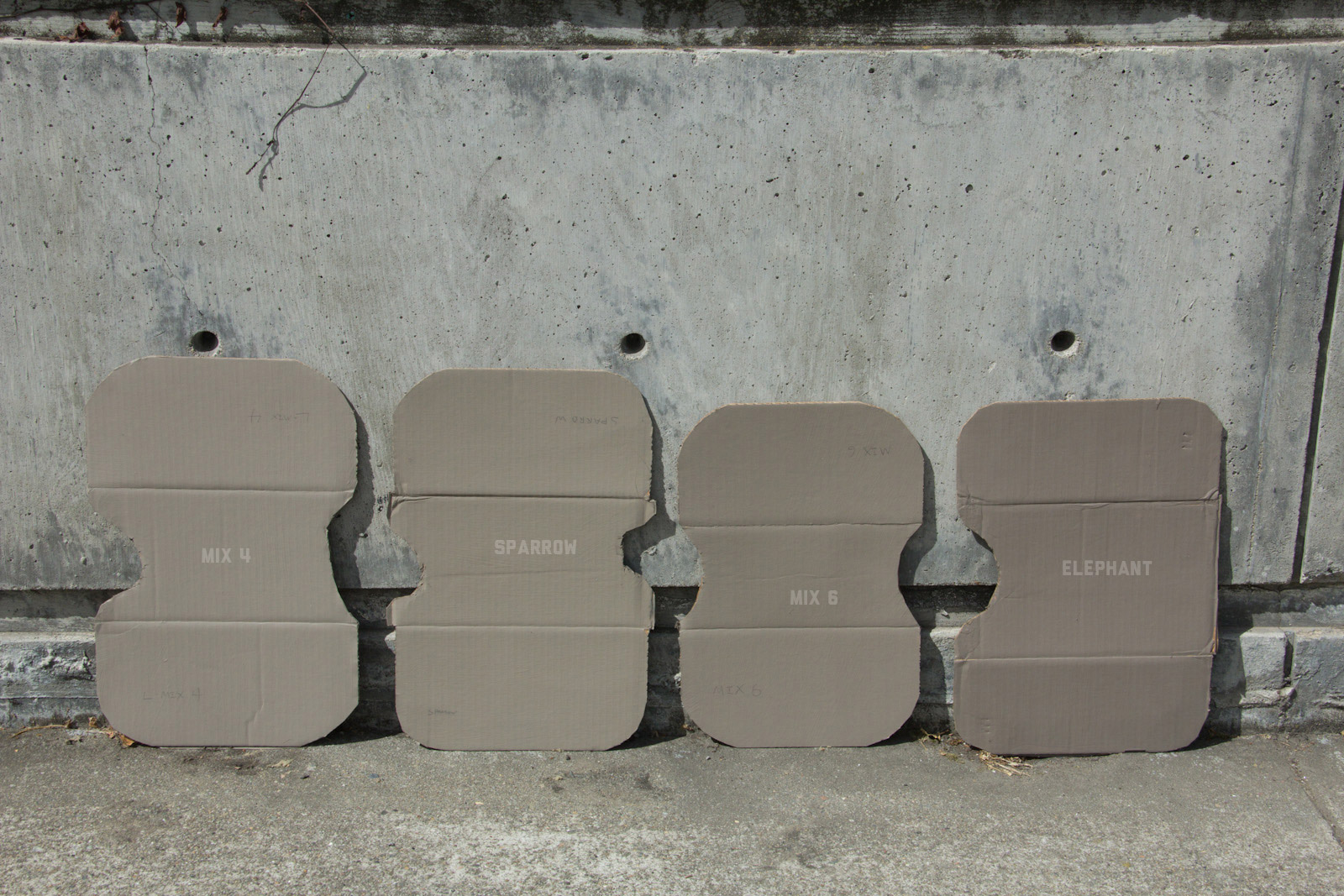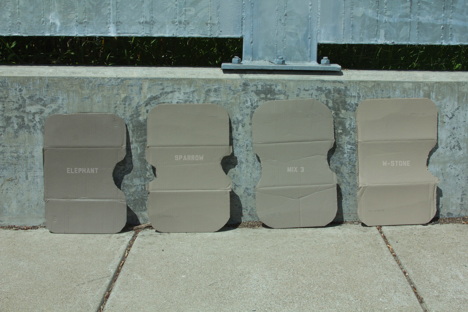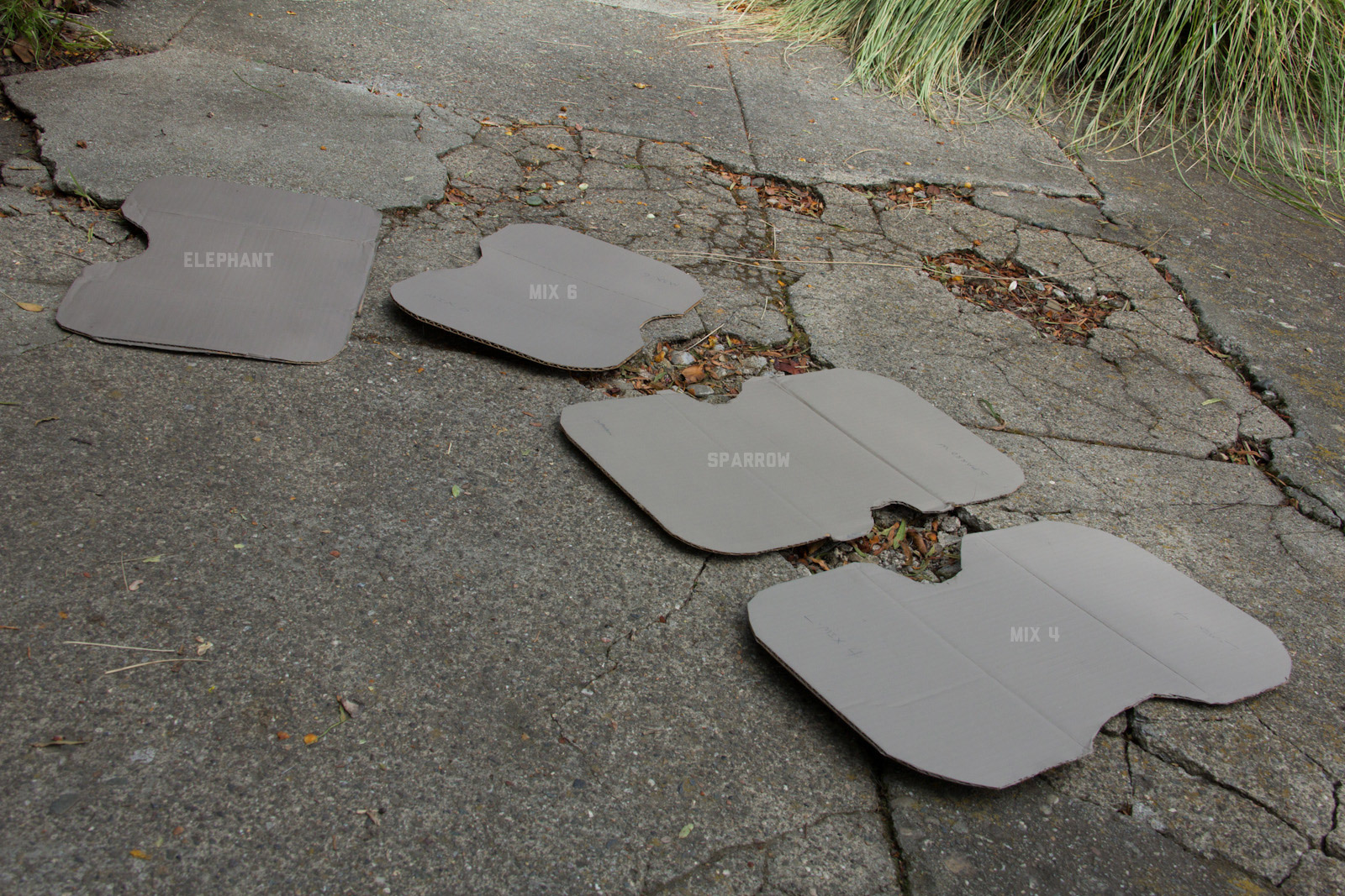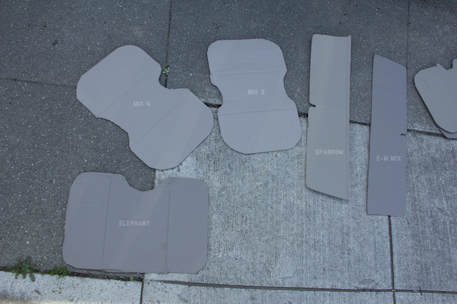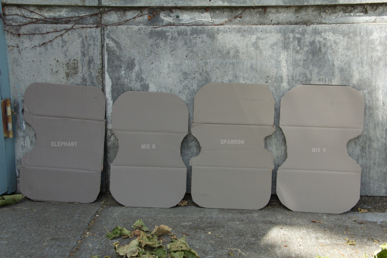 After a lot of back and forth on mixing and documenting, I narrowed things down to Elephant/Fauna, Mix6, Sparrow, and Mix4. The differences were getting pretty darn subtle which perhaps is a sign of good progress. Elephant leans towards the darker side, and although a smidge too much red it still looks good in a lot of places. Mix6 seems like a solid middle ground so far on the concrete spectrum, yet is still brighter than most tac colors in use. Going a little more light, sparrow also is in the middle zone and the slight green usually does more good than bad. Then finally Mix4 leans on the lighter end as a good neutral color, which of course makes it more susceptible to contrasting on darker colors.