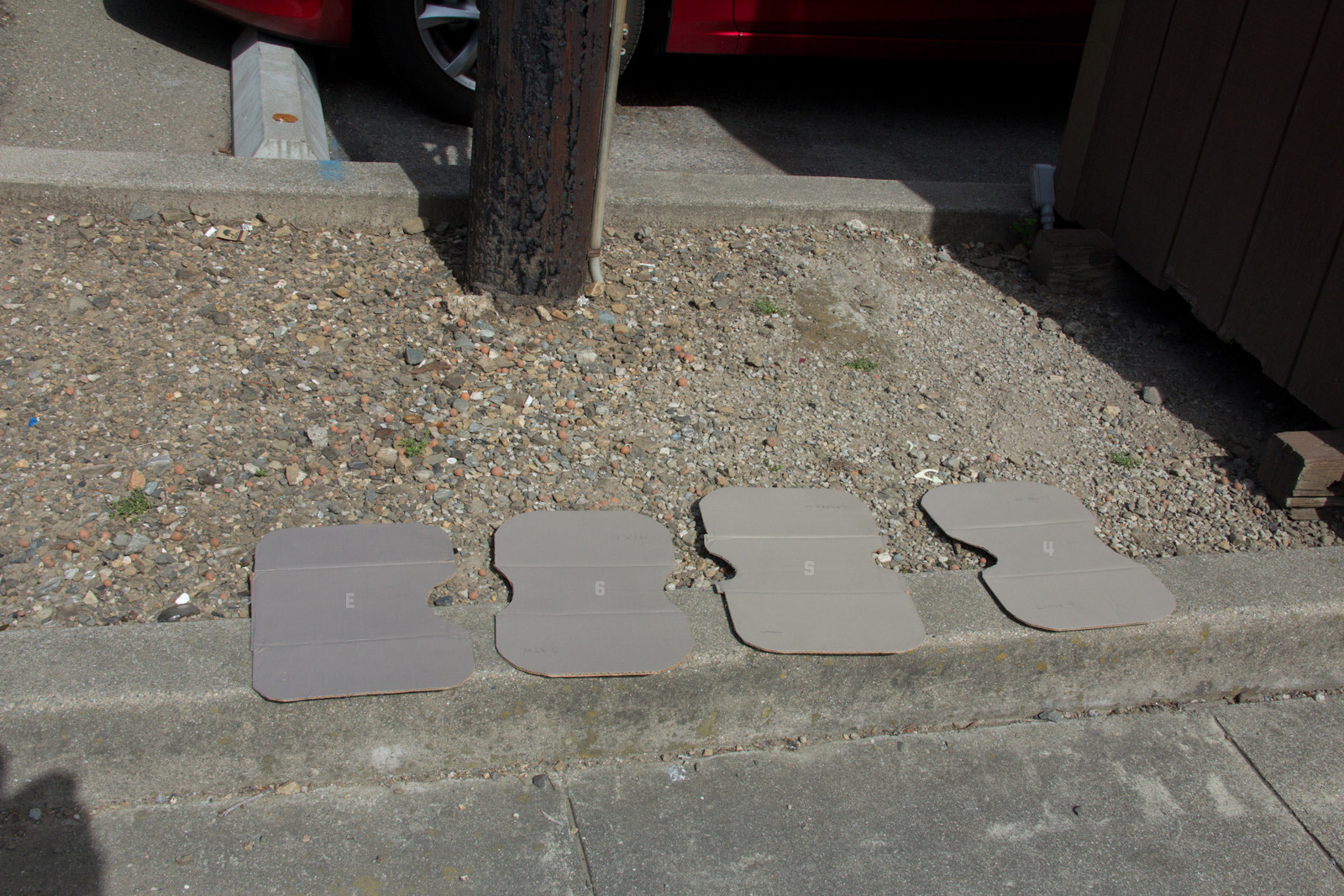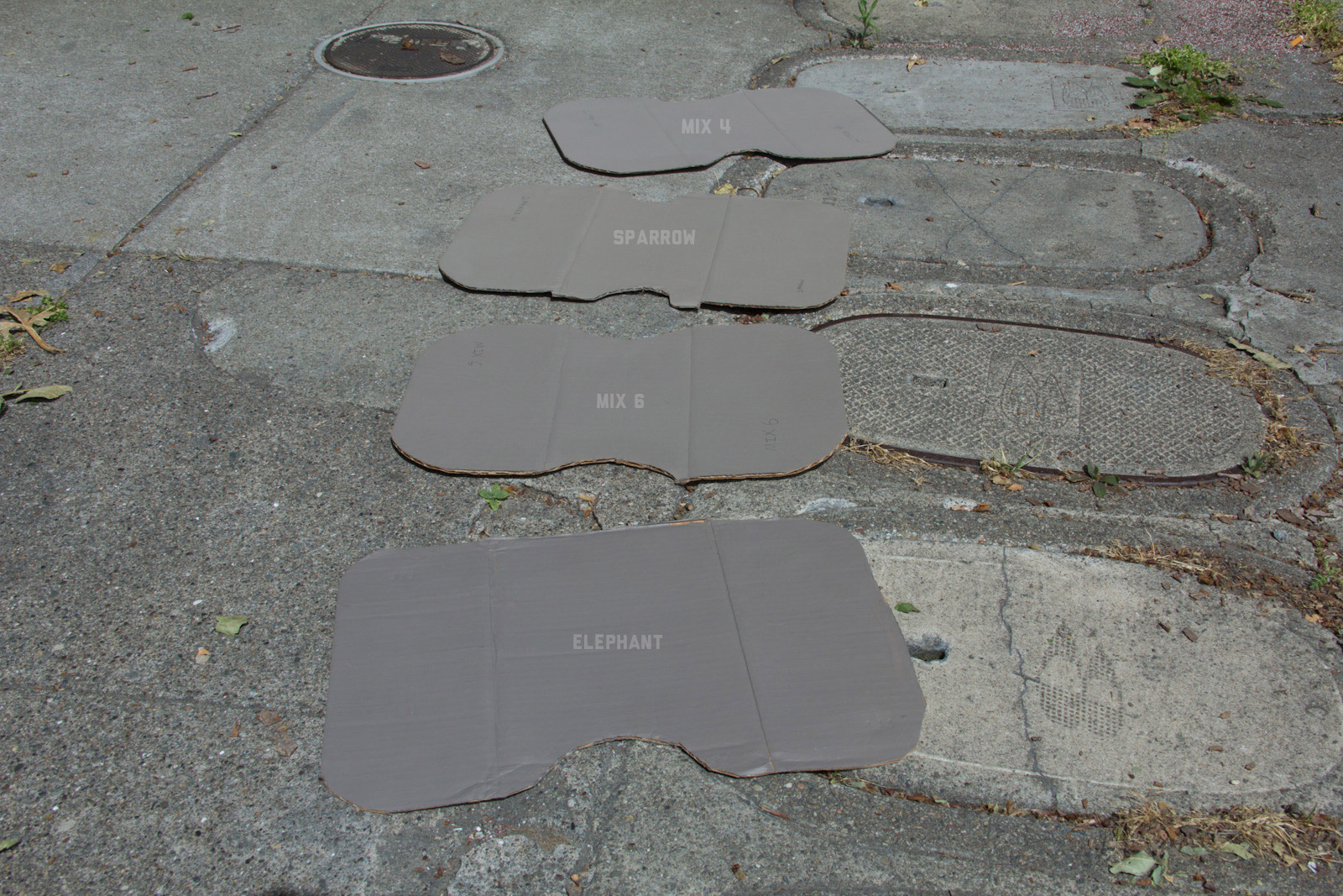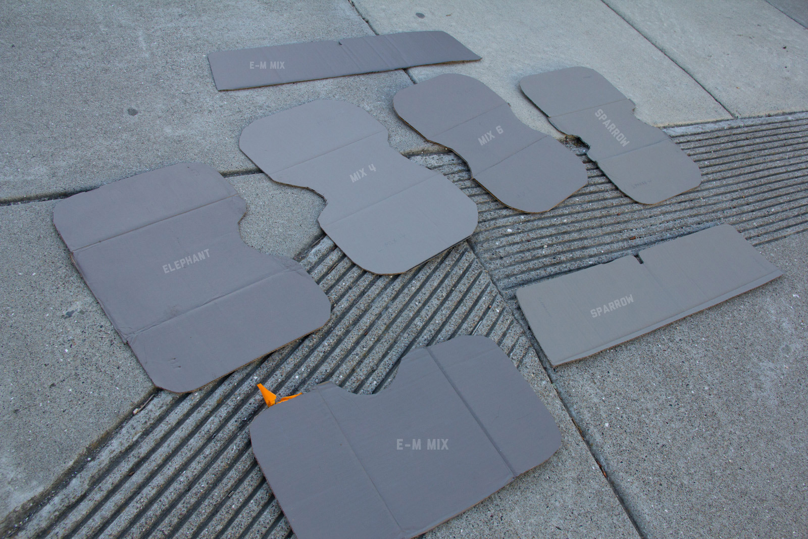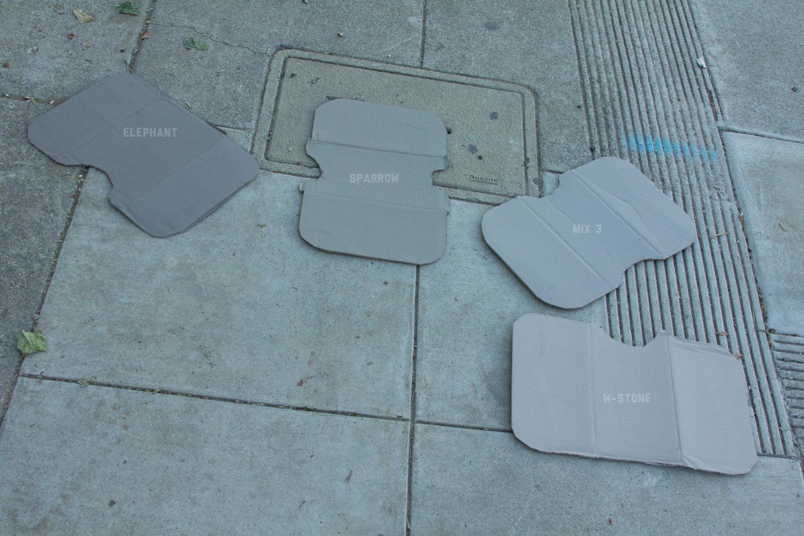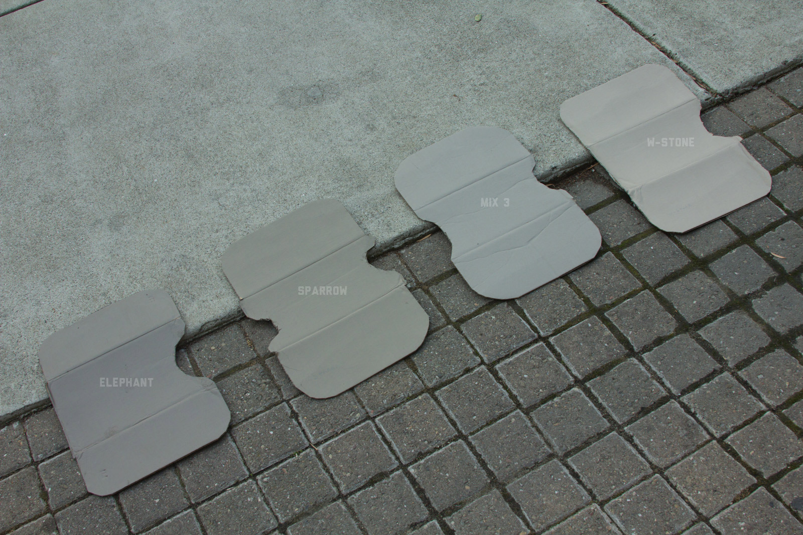 After some good feedback on this article I took the advice to try and investigate more concrete walls. As it turns out, most unpainted walls in my area are wicked bright, Pantone wise coming in around: 402 - 403, 7529 - 7530, WarmGrey 6 - WarmGrey 8, 7536 (on lighter end). I had my doubts hearing Crocodile (basically a desert tan) was being used in urban night ops, but after testing some lighter walls this made more sense. Based on this I got Wright Stone Tan 10YY 30/106 - card WN25 Glidden at Home Depot to add some lighter options to my testing. Instead of just small samples I also moved on to larger samples by painting cardboard chunks. For a more middle tone for my pile I also picked up Sparrow AF-720 by Benjamin Moore along with Brimfield RL4352 Ralph Lauren Paint, mostly as a light grey to mix with. By this time I dropped Mercer for looking too cool on most tests and in a bigger size the Fauna/Elephant had a little too much red, but was still good enough to keep around. Since Wright Stone Tan was going to be too rowdy on its own, I ended up with Mix4 for lighter end testing for a while. Despite enjoying sparrow for a light middle, it was showing just a little more green than wanted so after a couple more mixes I found Mix6 to be a nice result, being the middle of Elephant and Sparrow. I briefly tried Mocha, a color that looked good on the sample card, but with testing ended up pretty green.