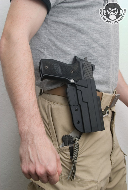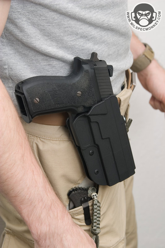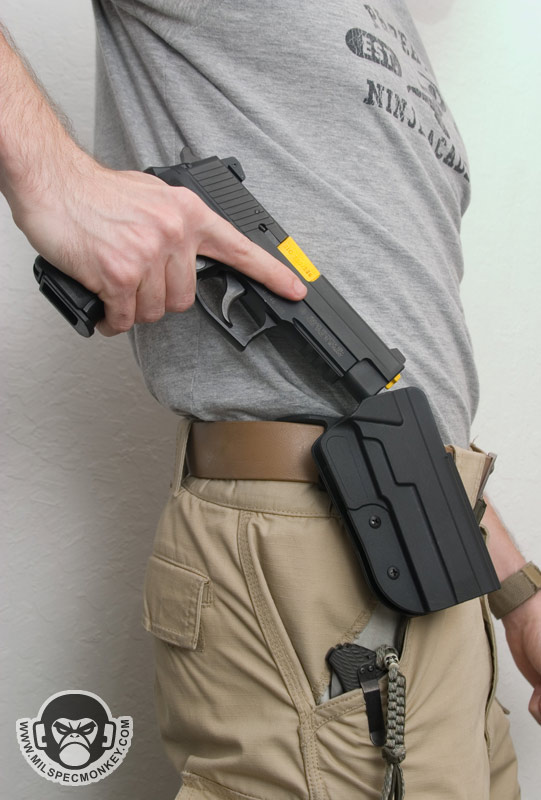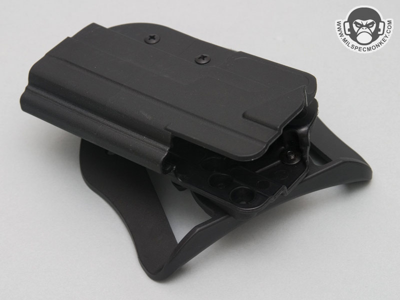 The package comes with the holster, the paddle, and a belt mount. Both the mounts are adjustable for a 1" to 2 1/4" belt and the paddle allows for cant / angle adjustment. 3 screws are used to connect to your chosen mounting platform. The paddle adjusts for belt width using a screw while the belt mount uses a snap-in connector piece. For further grip adjustments there are 2 screws on the holster itself to adjust tension. Overall the out of the box tension is pretty good. The product literature seems to always make a note of a positive click when the weapon is fully holstered, but this is just the gun tip smacking into the holster; so no "click" will be given if done slowly. Since the only thing holding the weapon in the holster is material pressure it is rated as level 1 retention. The flip side to this is that there is no button, snap, or anything to mess with to get to your weapon. Despite the low security rating, I can run around and do cartwheels without my pistol falling out, but the main threat is that someone else could snatch the pistol out of the holster with a typical grab. When it comes to open top / manipulation free holsters, the Revolution series is the best out there. Currently only available in black, the only downside is they aren't currently making models to fit pistols with combat lights. Despite this, they do offer versions of the holster to fit many of the currently issued MIL / LE pistols.