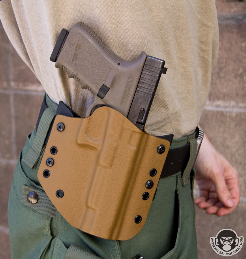 Since I've got a couple of glock types they went ahead and sent me a long version of their OWB (Outside Waist Belt) holster and a double pistol mag carrier. Due to kydex beeing used in tactical applications for a decent amount of time now, what sets kydex kit apart is usually the small details.