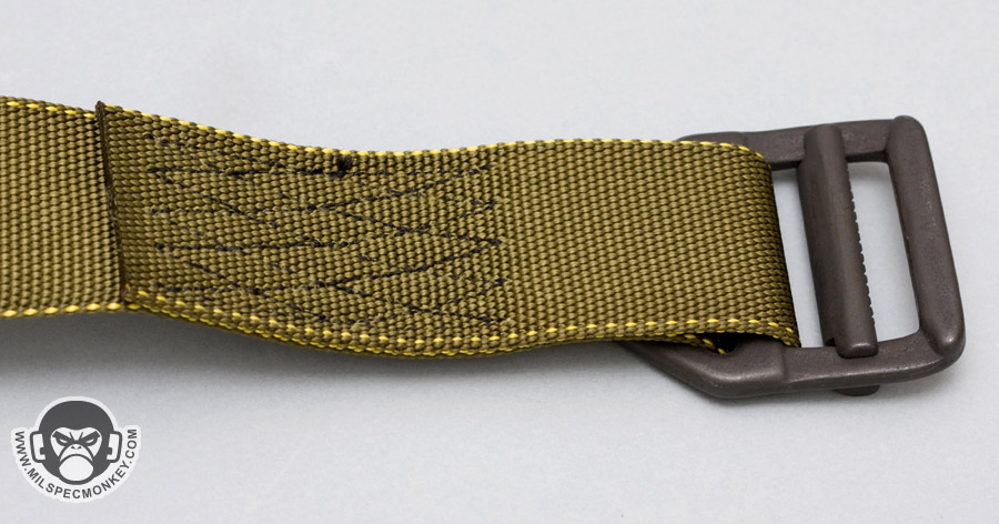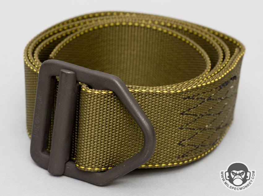 I like to help out the little businesses out there when I can so wanted to spread the word about this cost effective belt. Construction is minimal using mil-spec materials. The base is MIL-W-4088 type VII webbing (about 1.75" wide) that is sewn down in a serious way and the buckle is a classic rigger belt style rated for 2500 lbs. The lengths typically come long so you can easily cut and burn as desired.