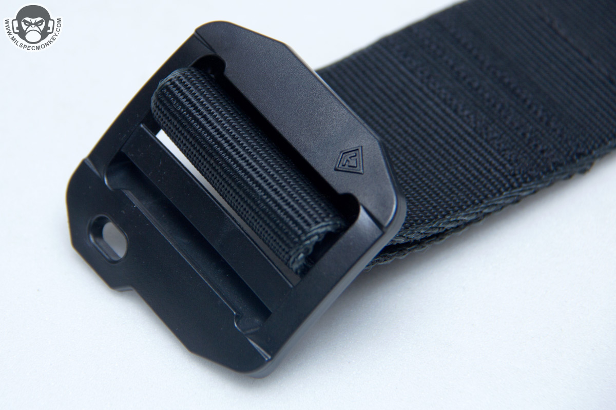 When it comes to simple webbing belts the small details are going to be the main things to look for and this series does include some nice touches. For starters a custom polymer buckle is used; the shape has a nice modern angular look while not sacrificing functionality. The thickness is appropriate for long term durability without being excessive and the side protrusion helps with angling the buckle for aid in adjustments. Although the hole is probably just for weight reduction, one could even add cord to the hole for even more adjustment grip options.