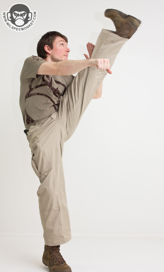 The rear pockets utilize velcro flaps and are of decent size able to fit a 30 round magazine. The velcro spacing and strength makes for a solid hold without being a pain to open. Further down the legs are the cargo pockets which unlike the old 5.11s are also able to hold 30 round magazines. Velcro flaps are used again as well and billows are incorporated so these pockets have good expansion. What makes this area unique is definitely the extra pocket space behind these pockets which have no closure. This is where user preference comes to a fork in the road as they are really convenient for quick storage and access, yet not so good for security and make the closed cargo pockets a little more floppy. Examples of ease of use would be being able to quickly store a pair of gloves without having to open anything up, while on the flip-side going prone or heavy movement will cause a general retention issue with any items inside. As long as you are standing up they make for pretty nice dump pouches. Not to be overlooked is the upper left frontal thigh pocket. Using a velcro flap the sizing is great for many phones and can hold most pistol mags as well. The only down side to this pocket is I wish there was another one on the right side. This pocket placement is handy to still be accessible while sitting down (vehicle ops).