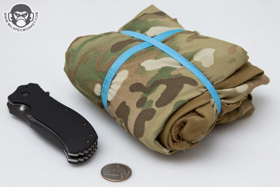 And to mix things up there is the Velocity Softshell ¼ Zip, which is available in full zipper jacket for those curious. It doesn't have the cool guy Flame Resistance, but it is a rowdy lightweight and thin softshell. Schoeller NanoSphere treated 2-way stretch shell makes the core offering great wind and water resistance. Since so thin the material doesn't breathe much to help with the heat / weight ratio. Tweave DURASTRETCH 4-way stretch panels are incorporated into the sides and shoulders to give enhanced stretch flexibility. They also sneak it in on the cuffs. The double zipper seems like an odd choice at first, but I could see a world where someone would want access to a chest pocket underneath without messing with the collar area. The collar itself can be worn lose or fully closed to give good neck coverage. The layout is overall simple, but they did manage to sneak one zippered pocket on the left arm. Since the material is so thin, this can make the zipper a little harder to open and close, but it does allow storage of something like a smart phone or wallet. Preferably I'd have the pocket on the right arm, since in the tactical realm right hands will tend to be busy holding onto rifles, but strike the current layout as a win for lefties. 782 also plans to add some loop velcro fields to this softshell for your cool guy patch needs. To help show the lightweight and thin factor, the last pic shows a quickie fold up attempt. This will easily fit in a cargo pocket and can be compacted even further by those with more skill in the art. This feature makes the Velocity Softshell a great backup jacket.