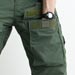 Not done with the pocket party yet, there are still some asymmetric bonuses. On the upper right side is a velcro flapped pocket good for multitool sized items which includes other items like flashlights and pistol magazines. The flap is both adjustable and removable to accommodate more item sizes. Over on the left side is a good dose of PALS webbing to let one get creative adding a pouch such as a mag or phone pouch. Then near the cargo pockets there is a folded knife pocket on the right side, which can be handy if you ran out of room in the hand pocket and then on the left side is a similar pocket setup that has been divided in 2 to hold a couple pens.