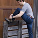 The 13oz stretch denim (98% Cotton, 2% Spandex) is definitely one of the main aspects that give the pants reasonable mobility. That 2% doesn't sound like much, but it is night and day compared to traditional fabric fitted jeans and being able to just move around. I went with the medium wash version where I like the gradient effects give a worn in look without having super rough spots or holes. For those who want a more clean solid color look the dark wash color is also offered. The contrasting tan stitching is a pretty classic look with bar-tacks in appropriate places and even some rivets. If being nit-picky the leather patch on the back waist is a bit big and contrasty for my tastes. The logo variant seems like an odd remix as well for the look, but worst case if anyone hates it, it can be removed with some de-stitching.