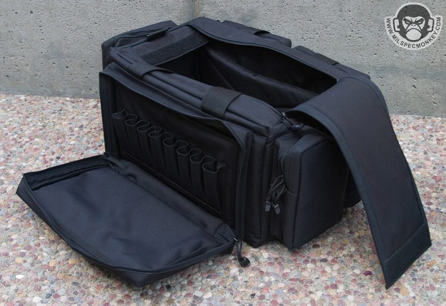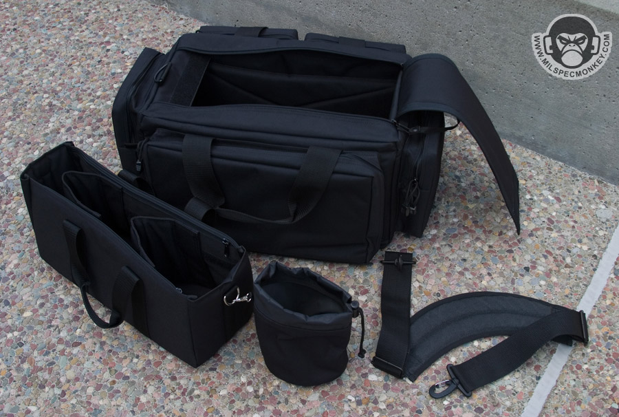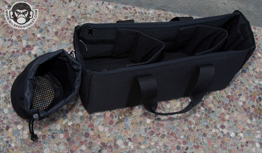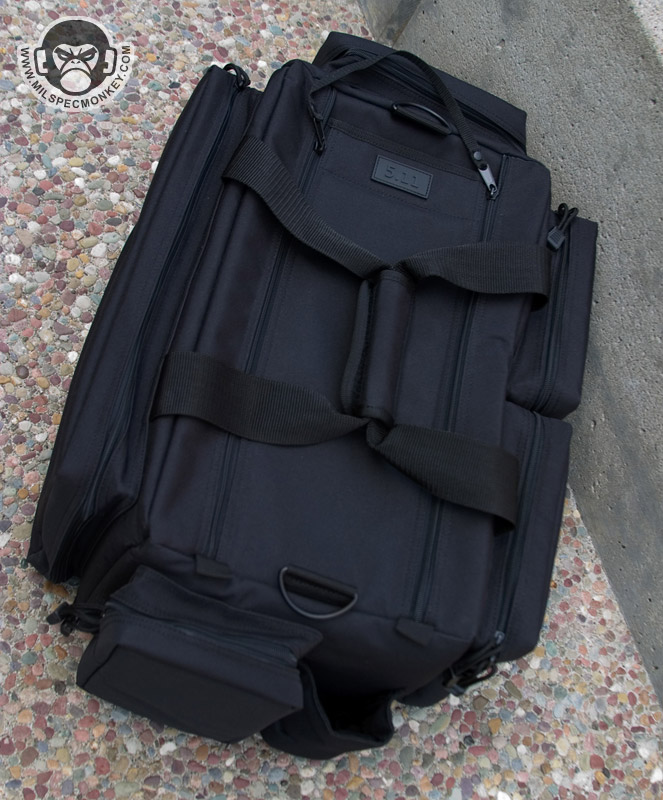 The 5.11 Tactical Range Ready Bag makes for, as the name states, a sweet range bag. At 24” x 16” x 10” one can also easily use it for a general gear bag. Made of mostly 600D polyester fabric the bag gives a nice quality feel upon first touch. Virtually every pocket is padded so you don't have to worry as much about metal and metal banging or rough handling of the bag.