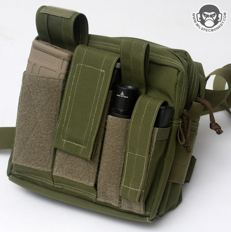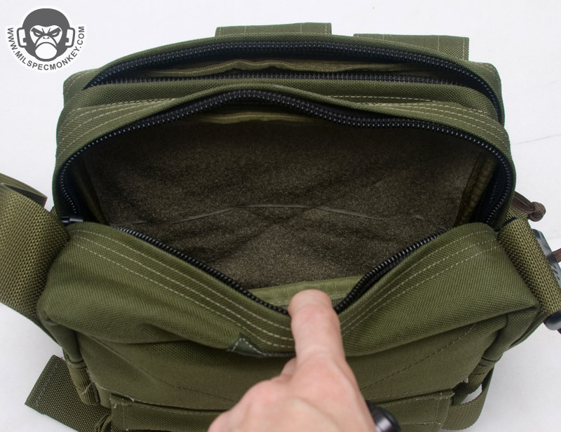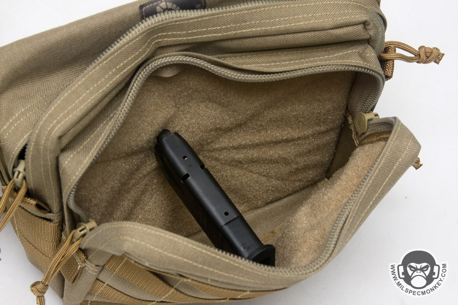 With the active shooter concept in mind, the bags make for good grab and go reaction capabilities. Starting with a simple shoulder bag core, what makes these bags stand out is the customizability. The interiors of both compartments are fully lined with loop velcro to accept tactical holding accessories such as pistols and mag holsters. One can fit a serious load of ammo or tactical tools inside.