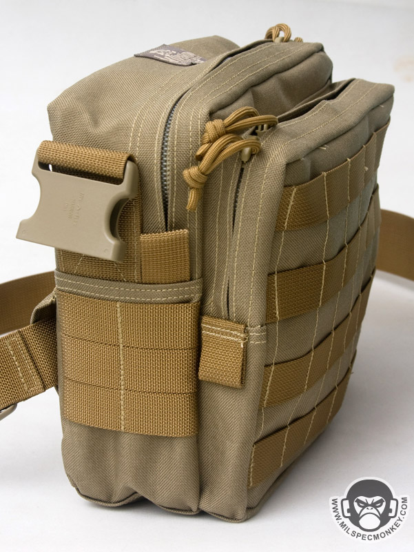On the exterior sides is PALS webbing, but only with 3 channels at 3" tall. This somewhat limits these to small accessory mounting points since mag pouches require 5" tall worth of PALS space to secure fully. One can mount one to these bags anyway, however the pouches will be a little floppy. To further the active shooter concept, a waist belt is included on the back which is a great asset to making the pouch capable of usage with rapid movement. Without it, usability would be much more of a hassle while clearing buildings with a rifle.