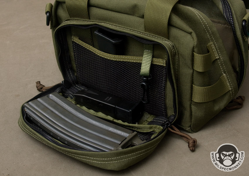 For a smaller bag the Jerobam gives some nice heavy duty gear holding possibilities. The size footprint works well for medical or small range bags and if you end up weighing it down with all ammo, luckily a padded shoulder strap is included.