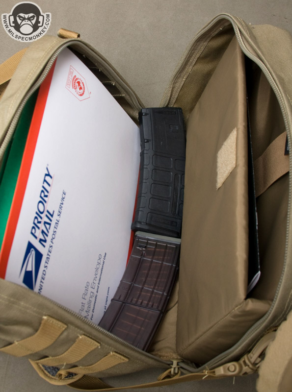 This "medium" size allows for a nice array of holding options. I've been putting a lot of random stuff inside, but at the moment this bag is making for a mean ass documents / paperwork bag. One can geek out and make it a laptop bag that also holds all the accessories and more or go full tactical and just pile in gear and ammo. Of course there is always the option of somewhere in between. Besides having less compartments I'd say the main other way it differs from the MPB is the main compartment opening style. Some users will appreciate the full access style opening of the Methuselah more.