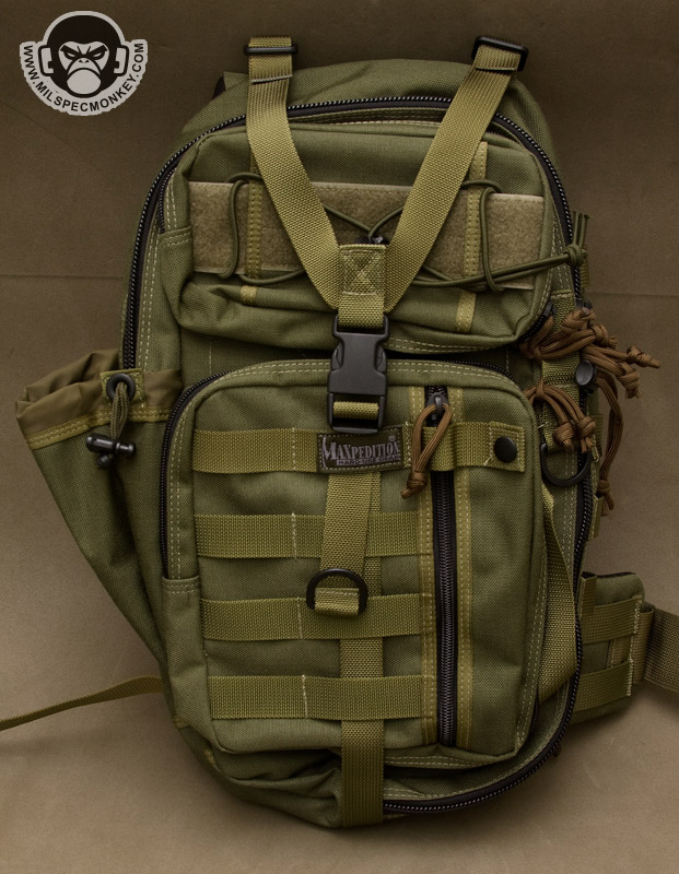 Maxpedition keeps em coming with further development in the popular gearslinger series. The Sitka first comes off to me as an evolution of mixing Typhoon and Lunada concepts. The result is a single strap smaller sized backpack that can be easily accessed when shifted from back to frontal position. Features are certainly abundant so I'll try not to bore you out going overkill with detail.