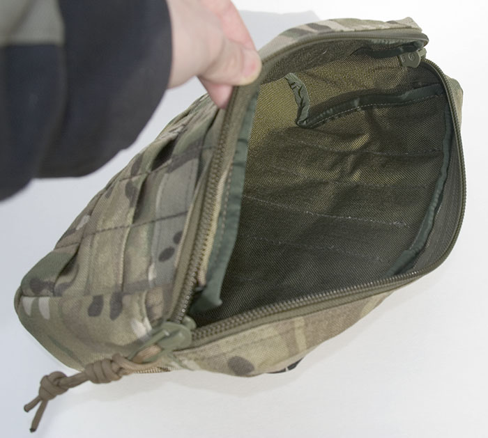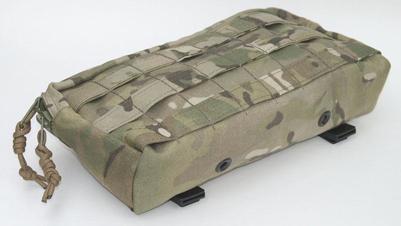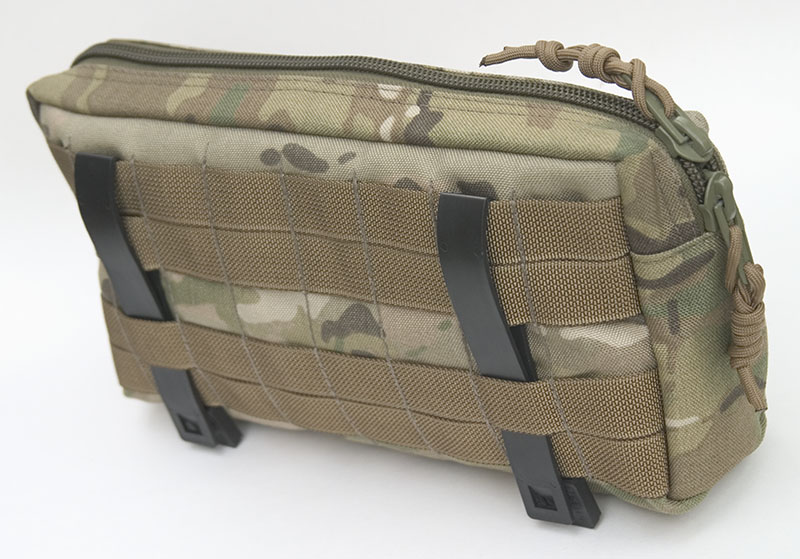 Notes: Good quality larger size pouch to hold more goodies. Bonus cordura PALS on the front to be more pro camo. Special "Lenzip" zipper requires a tug/pull on tab to move, preventing movement when forces stress the zipper in other ways. I roll with it on my plate carrier, but also works great for backpack expansions. Comes with Malice Clips.