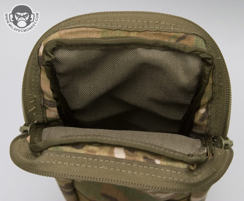 A straightforward hydration pouch with the usual great Esstac quality. Nice and thick with the double layer or cordura and uses the Lenzip zippers so they won't unzip on their own. Although this one is "naked", Esstac also offers this pouch with PALS webbing and PALS strips using cordura for the extra camo matching.