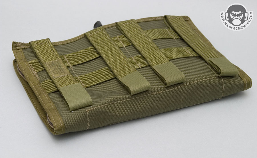 The elastic and pocket layout has all you need to get your navigation on. The arrangement is made to accomodate pens, notebook, protractor / ruler, and of course... a map. The map flap will keep your papers dry (covered, but not water tight) and is also removable if you want to tear it out to easily display to others. Unfortunately the map flap doesn't quite fit 8.5" wide legal papers and fits about 8" x 11" paper. Another slight draw back is the zippers can get caught in the open angle limiting straps. When opening sometimes the thin webbing slides right in the zipper jamming it up. Perhaps a cord like 550 may be better used here and won't slide into the zipper track. As you see, the panel is indeed big taking up my whole upper chest area on my kit requiring 6 PALS channels. I was worried this would interfere with my weapon stock placement, but since the panel is flat, it actually is not much of an issue and easy to get used to stocking against.