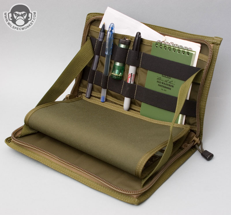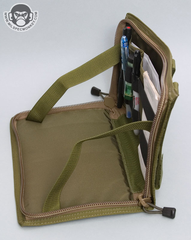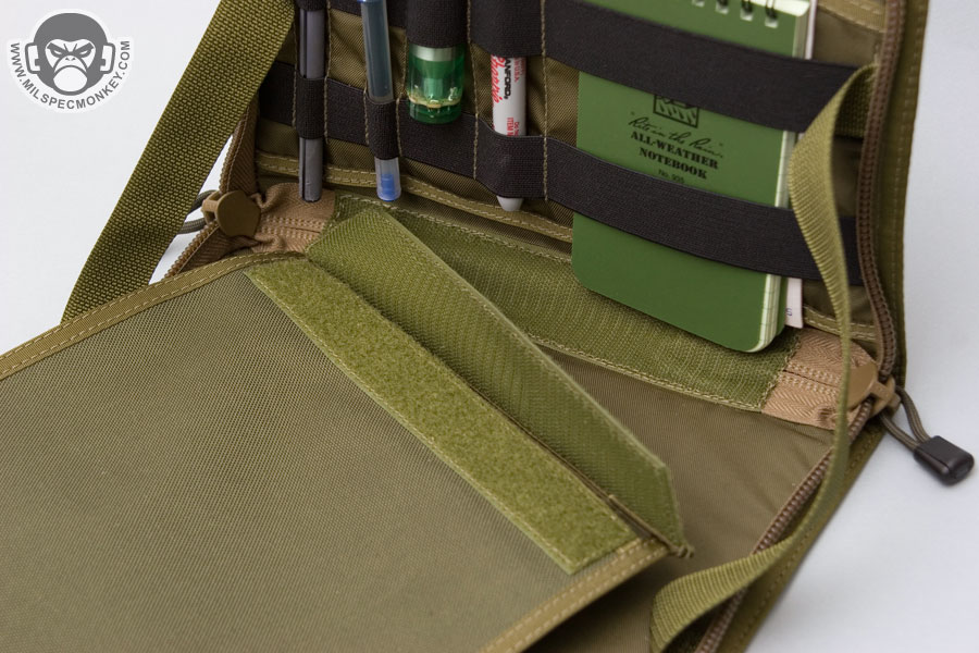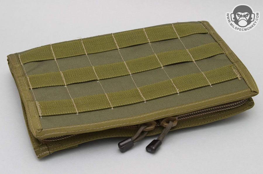 A more unique item, it works great for having quick access to documents and other admin goods. The intention is to mount it on the chest area of you kit, however it can also work well attached to a tactical bag. When mounted to the chest, the panel opens to about 100 degrees thus making a great hands-free admin platform.