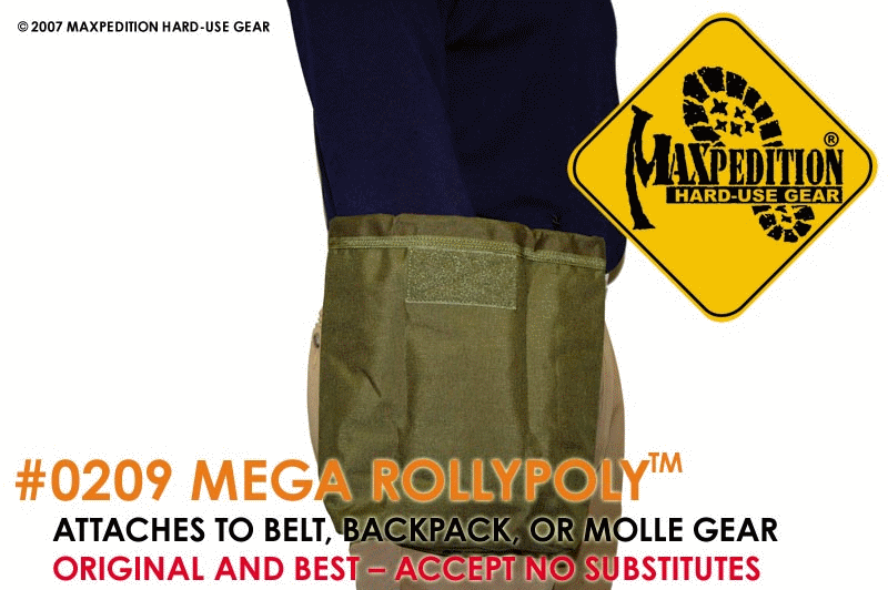 Also the main closure is by non-elastic cord and cordlocks rather than shockcord. With this size you can get into bigger items such as gas masks, but in general works great for anything of large size yet minimal weight. For the civi side these work great for groceries. Back to more MIL uses, also works great as a prisoner hood. In that use the cordura perhaps is not the most breathable material, but I think you get the idea. Currently available in OD, Khaki, Black, ACU. Malice clips not included. Check out the animated gif link for a quick foldup demo.