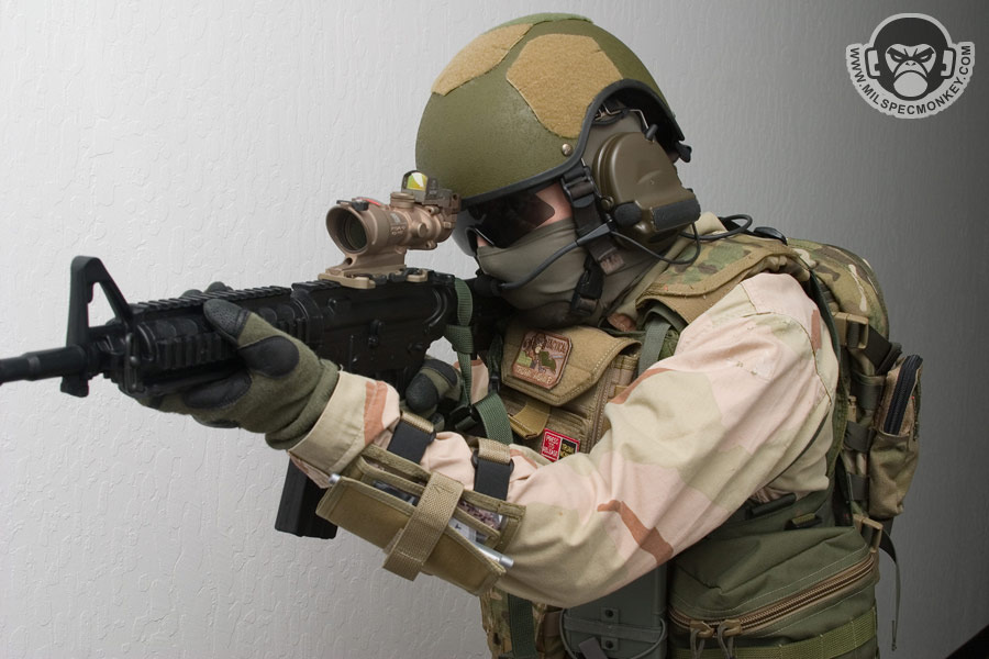 Another feature setting the Monkey Combat Pouch apart from the rest is the unique ID flap. Although at first glance, one may want to pull up on the pull tab, the tab is pulled down to open. A clear vinyl sleeve with anti-glare texture allows placement for 2 IDs, a mini map, ballistic sheet, HVT pictures, or whatever slim item one wants to put in there. The folding of the pocket naturally makes 2 divisions, but there is only one opening to deal with. When the flap is closed, the goods are velcro sealed securely inside. This allows the user to quickly flash their ID or view intel when needed, then go back to business being fully concealed. The way the ID flap is stitched to the pouch creates a cave area where items can be stored. A flashlight, beatstick, or knife fit in here well for quick access, but low security. Alternatively slim paper documents can be hidden inside as well.