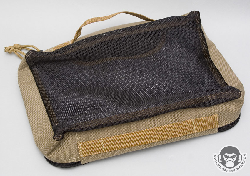 Depending on which size they can be great for holding toiletries and electronics in the small and medium sizes, or even hold clothes to keep them wrinkle free in the large size. 2 Small Cuboids will fit inside a Medium and 2 Medium Cuboids will fit inside a Large. The main material used is a nylon mesh, but inside is a clear vinyl with reinforced mesh divider. Double zippers are used to open up the Cuboids clamshell style. Webbing is on the top with some slack to be used as a handle and more webbing is on the bottom for attachment points or a secondary handle. The mesh on its own is fairly see-through, however trying to view objects through both the black mesh and the clear divider is difficult. Thus plan your packing placement accordingly if visibility is important to you. Overall simple and easy to use, Cuboids make great additions to larger packs for organization. Many colors are available, but keep in mind the color only applies to the 1000 nylon material areas which is the trim/sides and some of the front. The mesh material is always black. Currently available in Black, OD Green, Khaki, Foliage, and UCP/ACU.