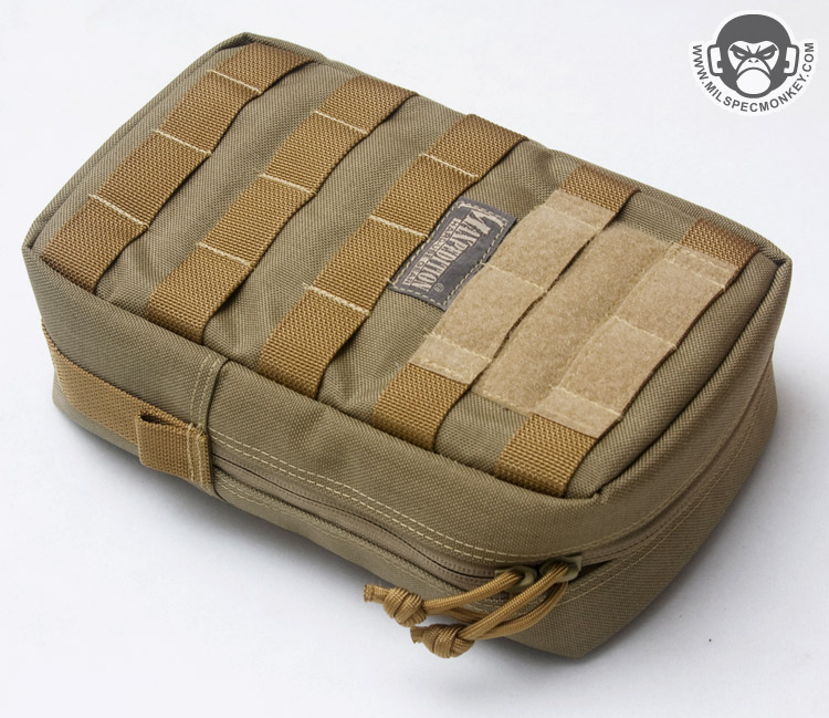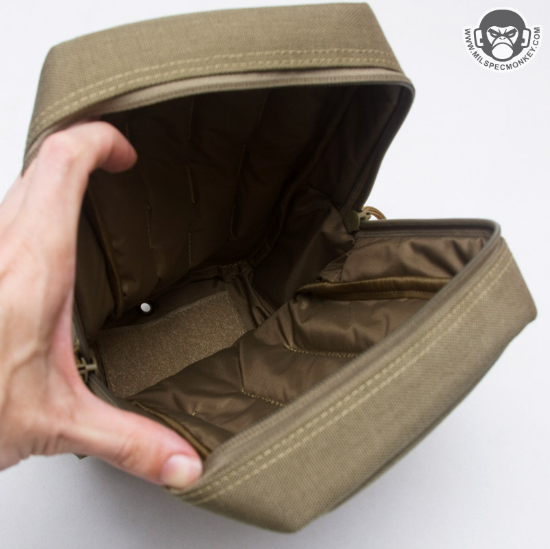 This pouch is now around to expand the Maxpedition padded line for those who want something in more of a large GP size. At this size you can get into larger electronics such as hand camcorders. Of course feel free to get crafty and fit whatever items you want inside to have a cushy ride. If attached directly to the body the padding can also make wearing more comfortable for long hauls. The main opening double zippers are done reversed style and work nice and smooth.