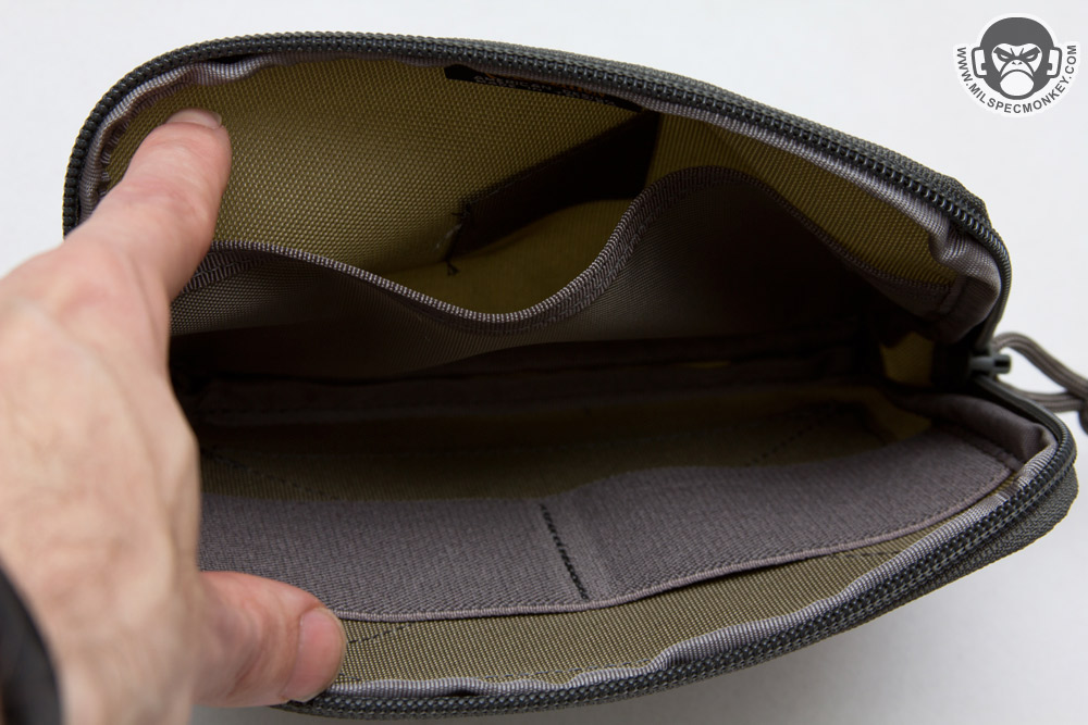 Some more velcro insert goodies for you tac bag folks out there; Maxpedition has expanded the hook back pouch line with the 5" x 7" and 3" x 5" Zipper Pockets. The layout is overall simple using a double zipper opening. The interior has a sleeve pocket on one side and elastic divided into 2 channels on the other.