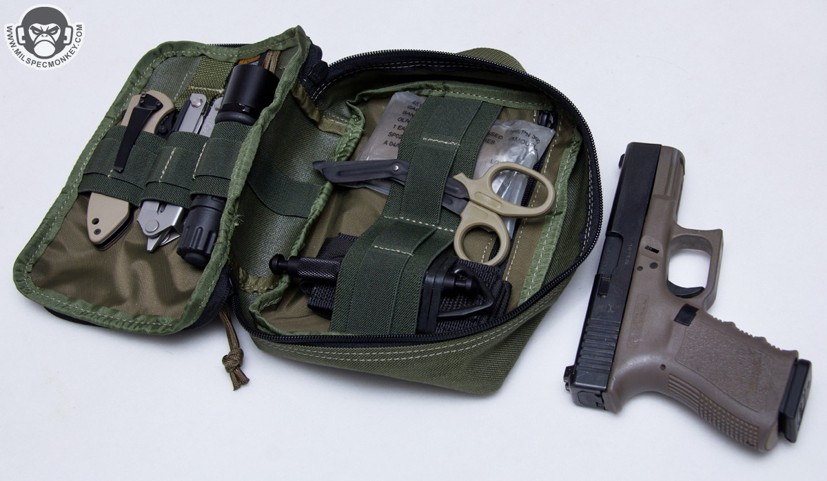 As an end result these larger organizers work out to be like hybrid GP pouches. Since the interiors are fairly feature filled they work better at holding smaller items good for electronic accessories and first aid gear just as some quick examples. Although maxing out the size constraint, they can be worn in a cargo pocket while also being big enough to be a useful organizer inside larger packs or even mounted externally. Due to the clamshell opening however, care should be given when mounting externally to properly secure items . If items are just tossed inside loose there is a risk they will fall out while opening. The clamshell opening makes the pouches easiest to access from the side where traditionally GP pouches are accessed from the top. I've personally found these pouches most useful for organizing smaller gear inside larger packs, but cool to see they are capable in being used in many ways.