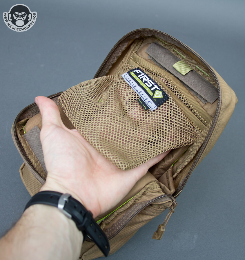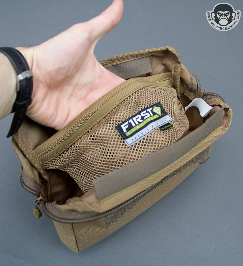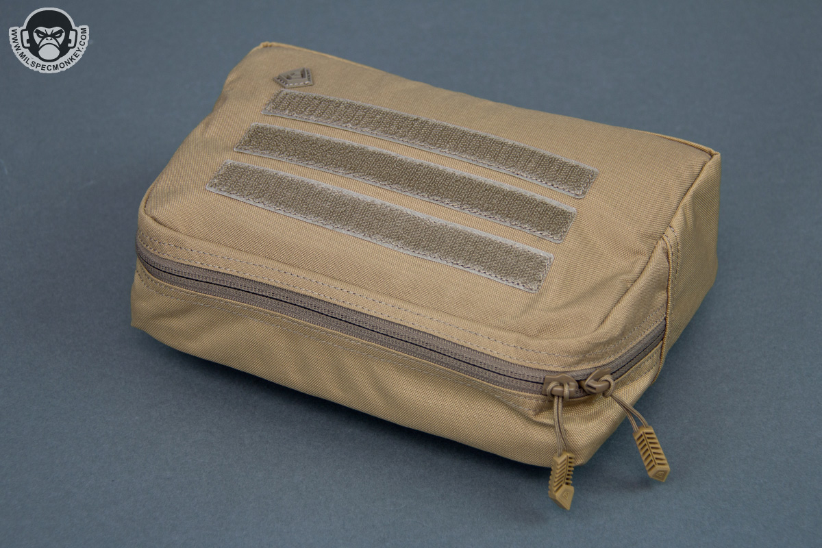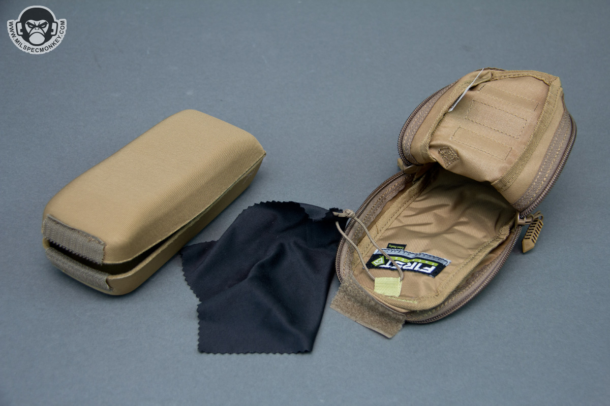 TACTIX SERIES EYEWEAR POUCH: Hence the name made to hold eyewear, instead of the HD style foam it includes a much more rigid sleeve for crush protection and a tethered microfiber cloth. It will hold full size shooter glasses, yet I wish the zipper went down just a little further to allow a larger opening to make removing eyewear easier. First Tactical did however have design intent where one can just keep the pouch open and there would be enough retention to hold eyewear in for users going in and out of different lighting situations frequently.